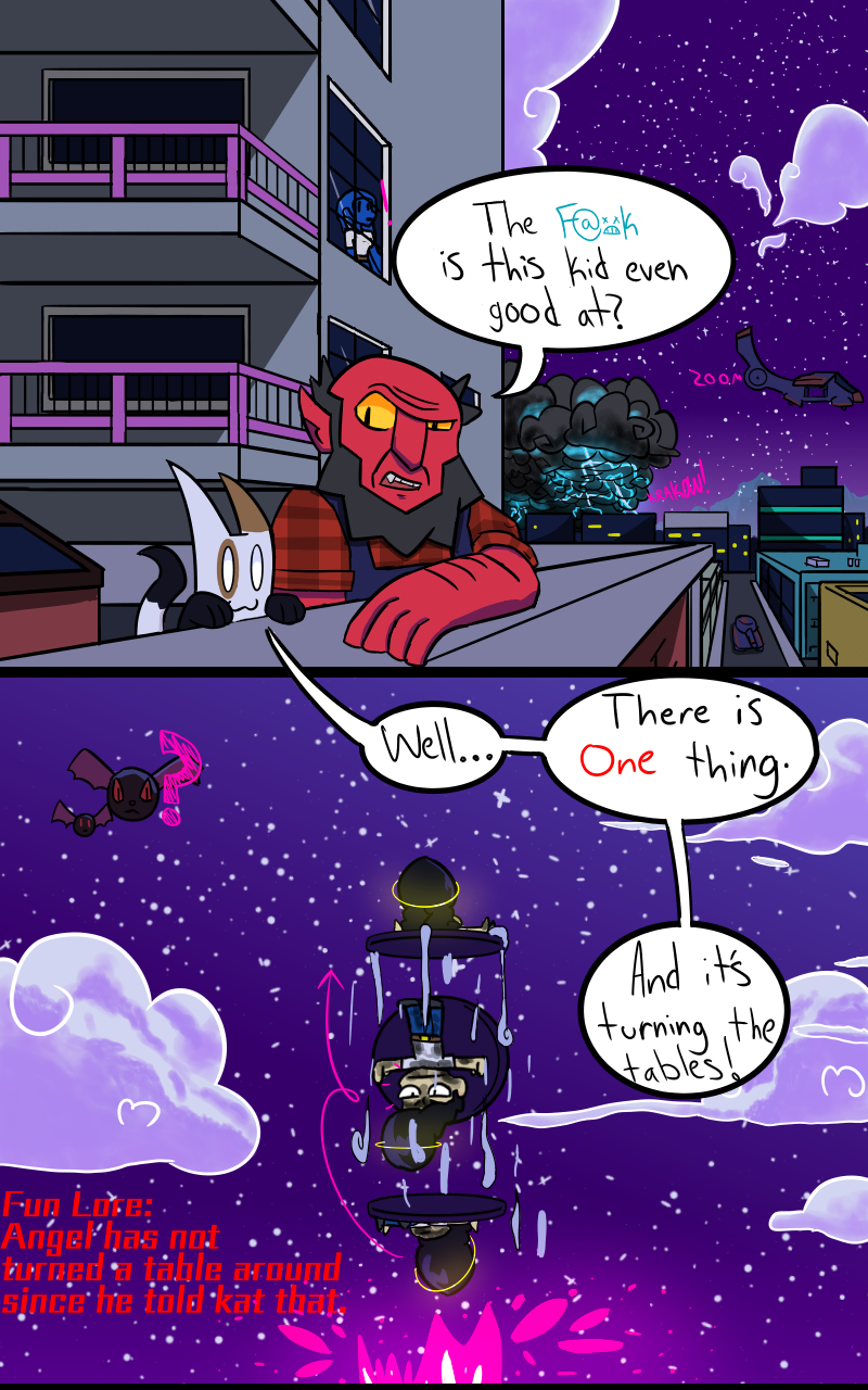 Angel almost dies, while Kat is just learning "magic" with Tensue.