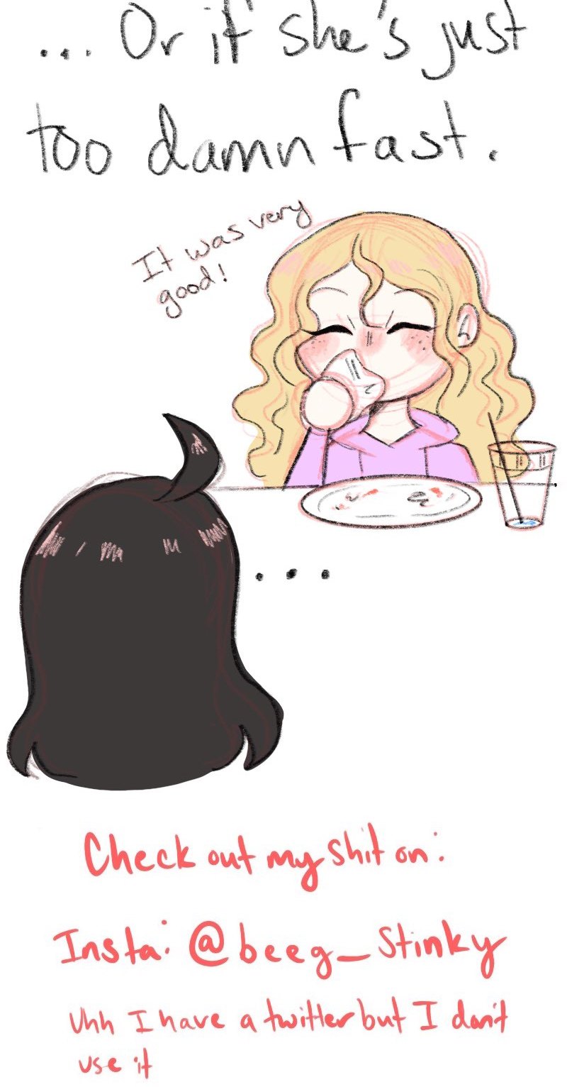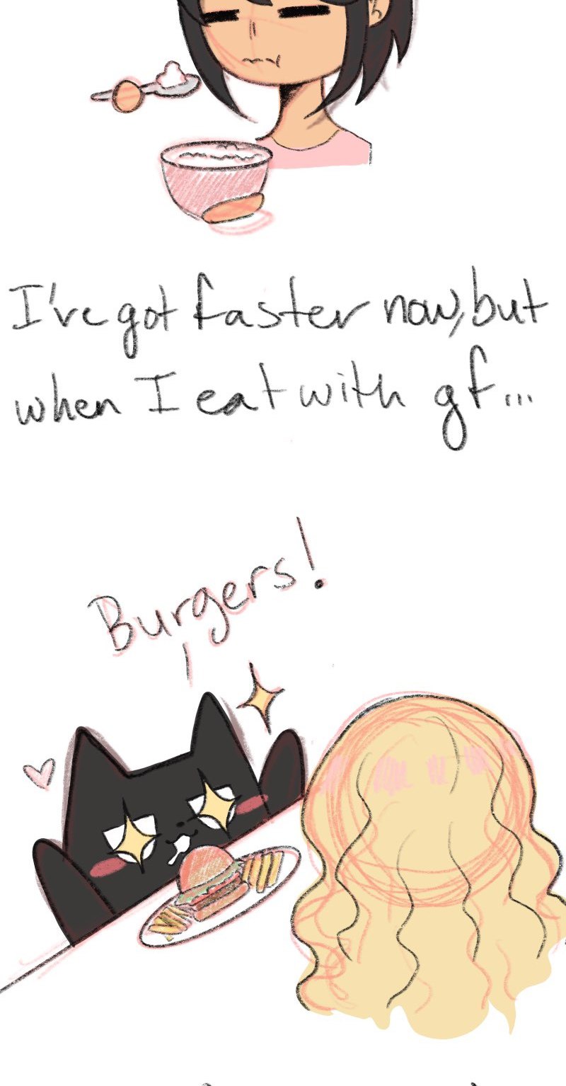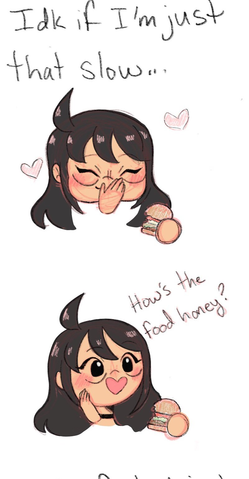 IK its only been an episode and its already another food episode (I just like food now and I made good memories with gf due to food so sue me but don't actually do that, I'm a broke college student and will cry) Also gf is a wayyy messier eater irl then in the comic