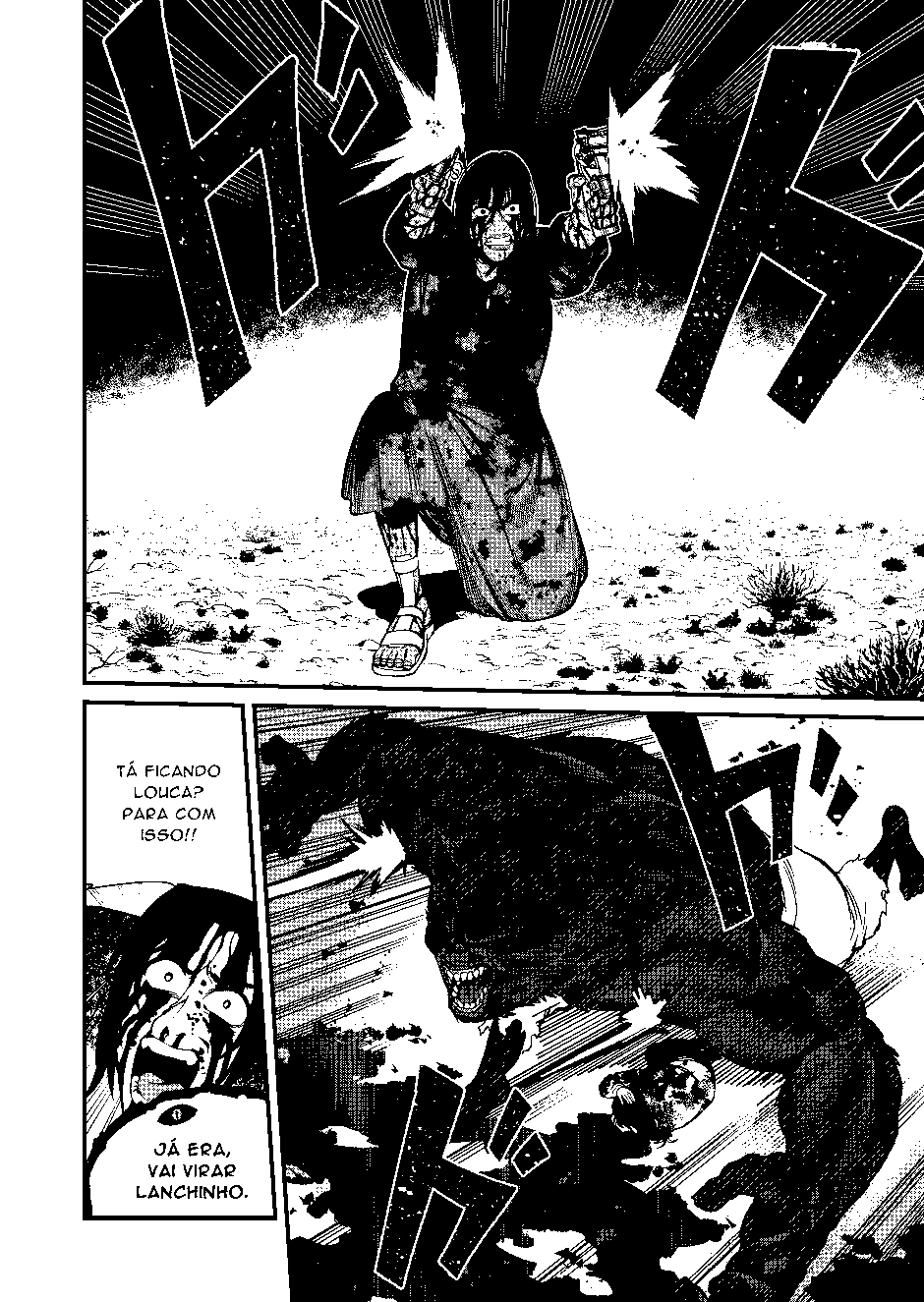 Estou ansioso pro volume 4, gostei dessa luta contra o Lobisomem, o monstro não querendo morder o maldito por causa do gosto foi foda kkkk