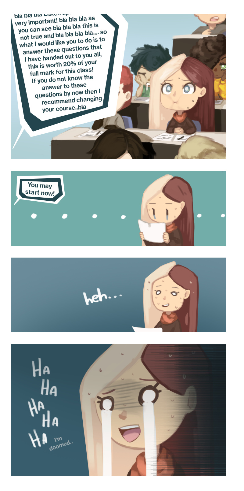 Exam season is coming up so I decided to draw something for it! Ever went to an exam not prepared? How did it go? Also changed the cover image for MEL series, what do you think?