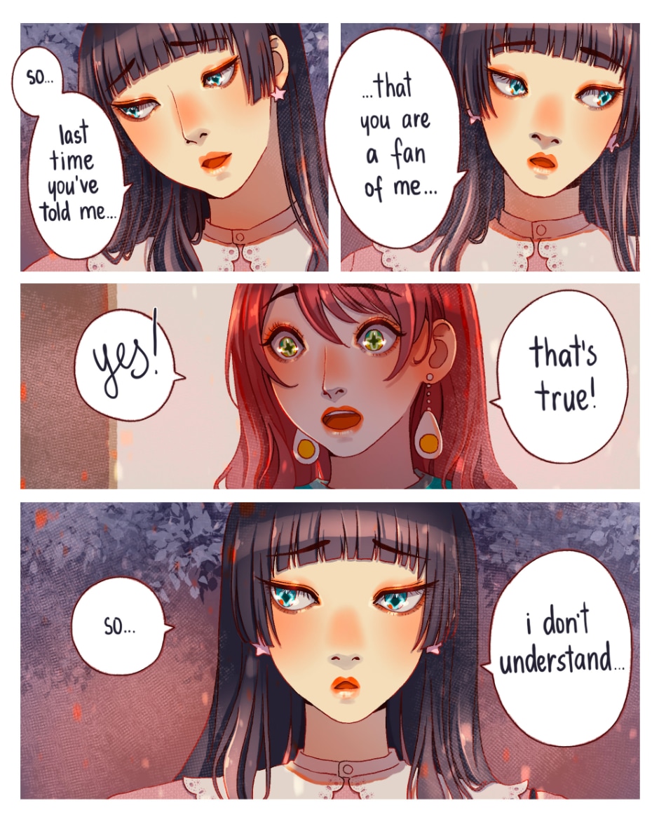 I really love your art style and the story is so cute !! I dont get why you dont get much visibility with a work like this one !! Thank you for sharing the story of those two girls with us, keep going and take care :)