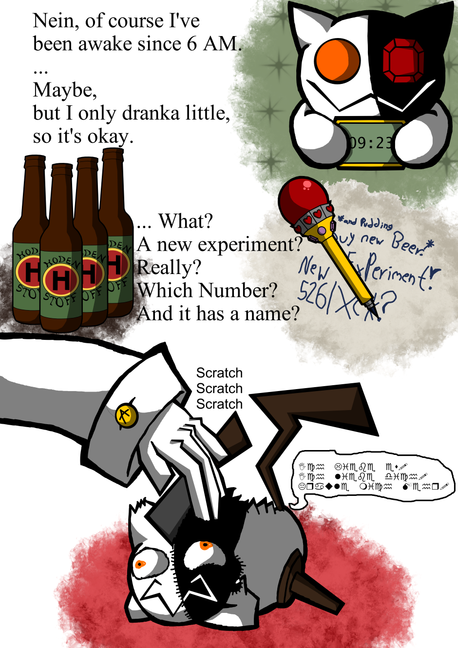 The comic is about Xck, a experiment and its family of other experiments, who are all living in a tower and worship Hodenberg. Till they start to question if Hodenberg and his regime are really that good and what lies outside of the tower.