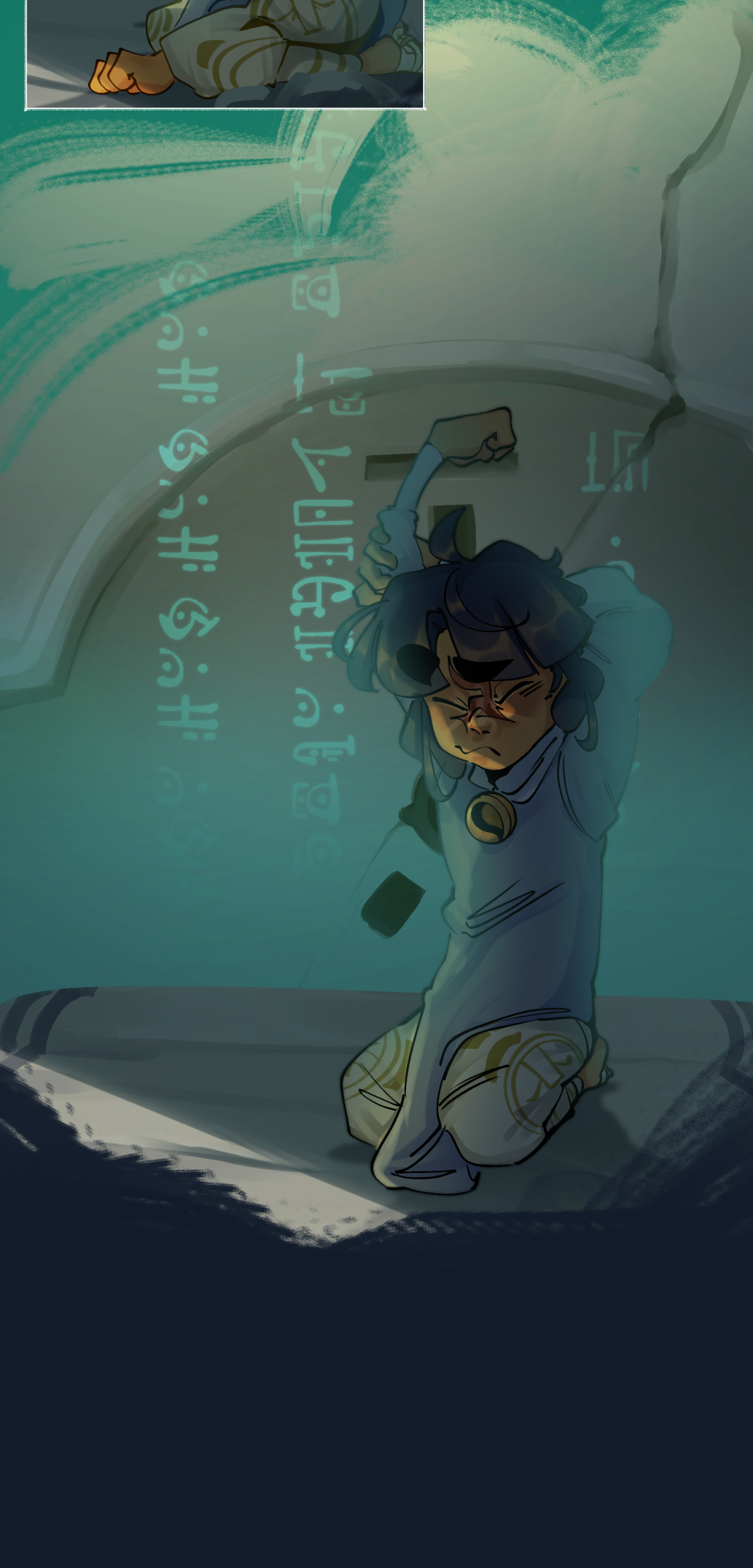 A child of mysterious origin wakes up with no understanding of where or who they are. Joined by a blue flame and guided by a group of eight ghosts, they embark on a journey and discover that they must awaken an ancient god— one who’s name has fallen into myth.