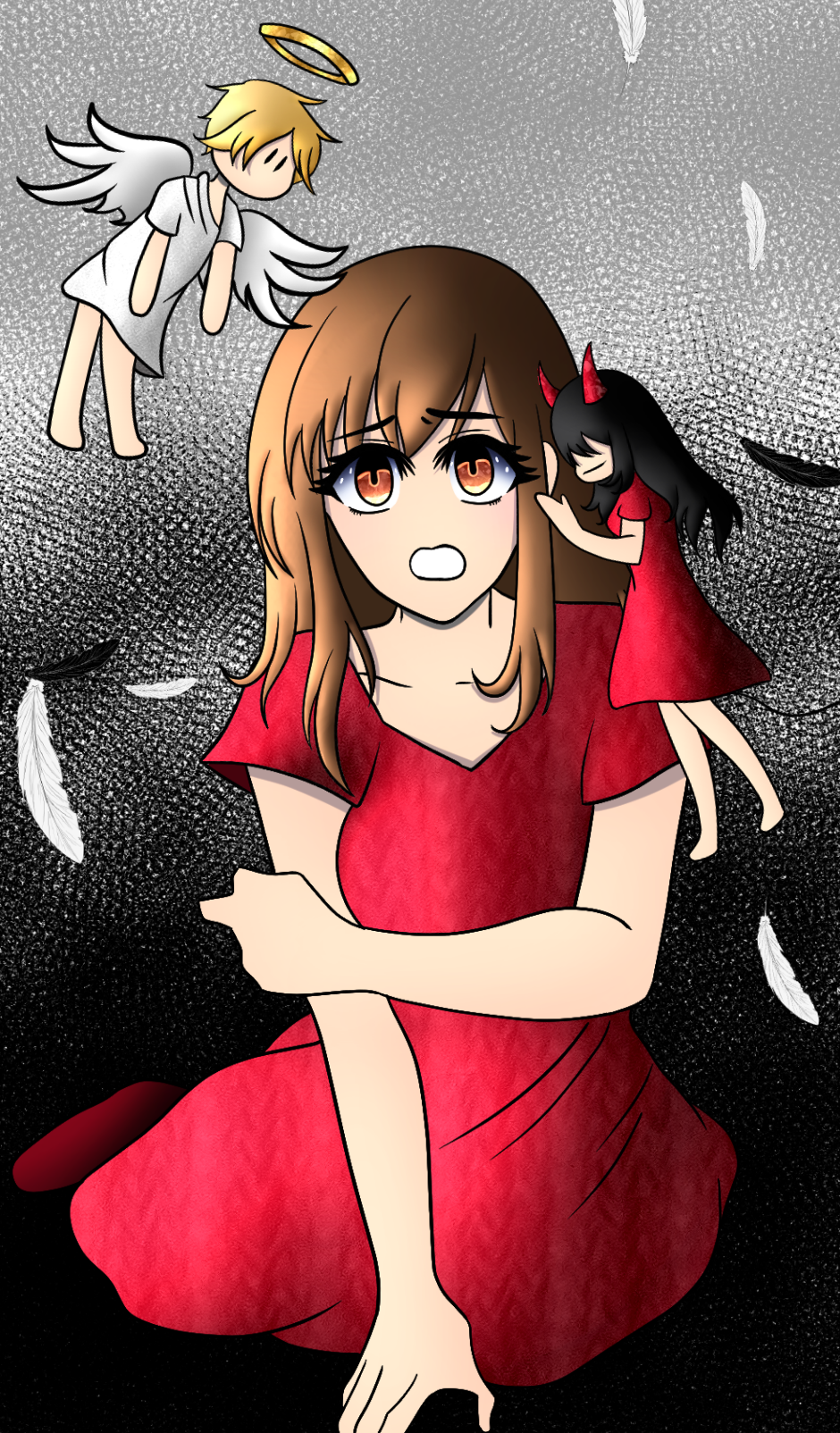 A troubled 18-year old high school girl goes down the wrong path in life due to her bad choices. However, when fate forces her to reconsider, she is left with two options: to change the outcome of the fate set before her or fall deeper into the depths of darkness like the demons want her to. But could the interference of a guardian angel's confidence to save her from the very darkness she is slipping away into fulfill his wish of becoming human; save her? Or will the angel fail in his wager with the goddess Karma to spare her soul?