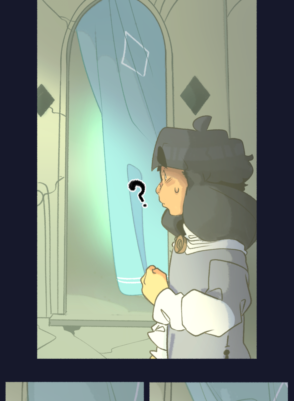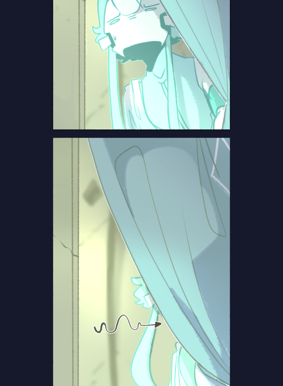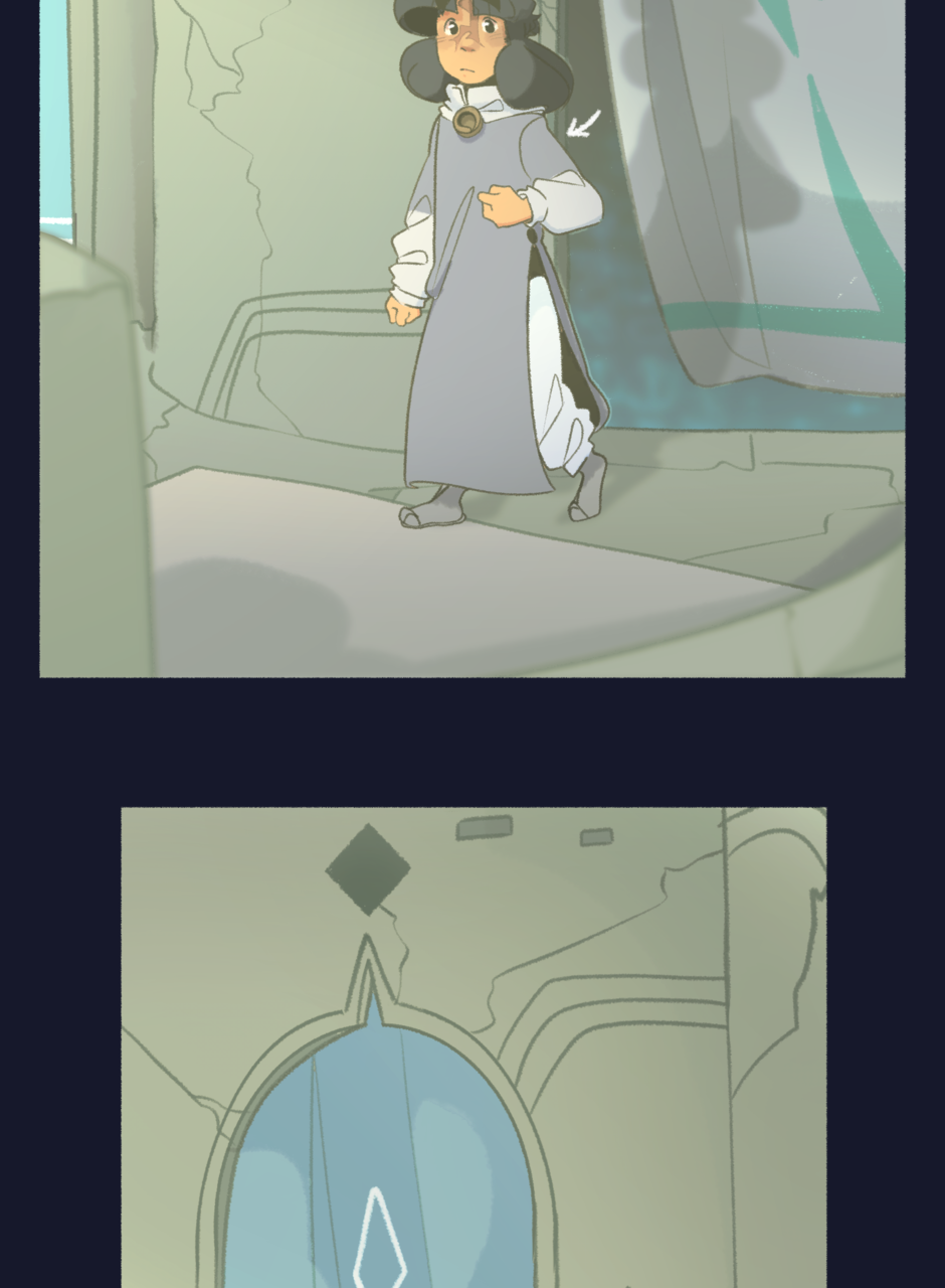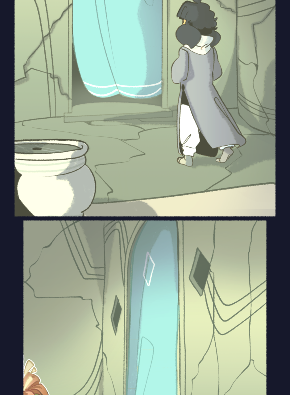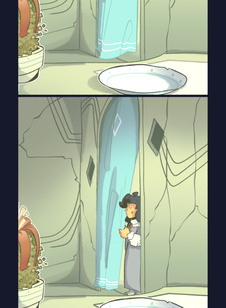 they turn and look over to another doorway,