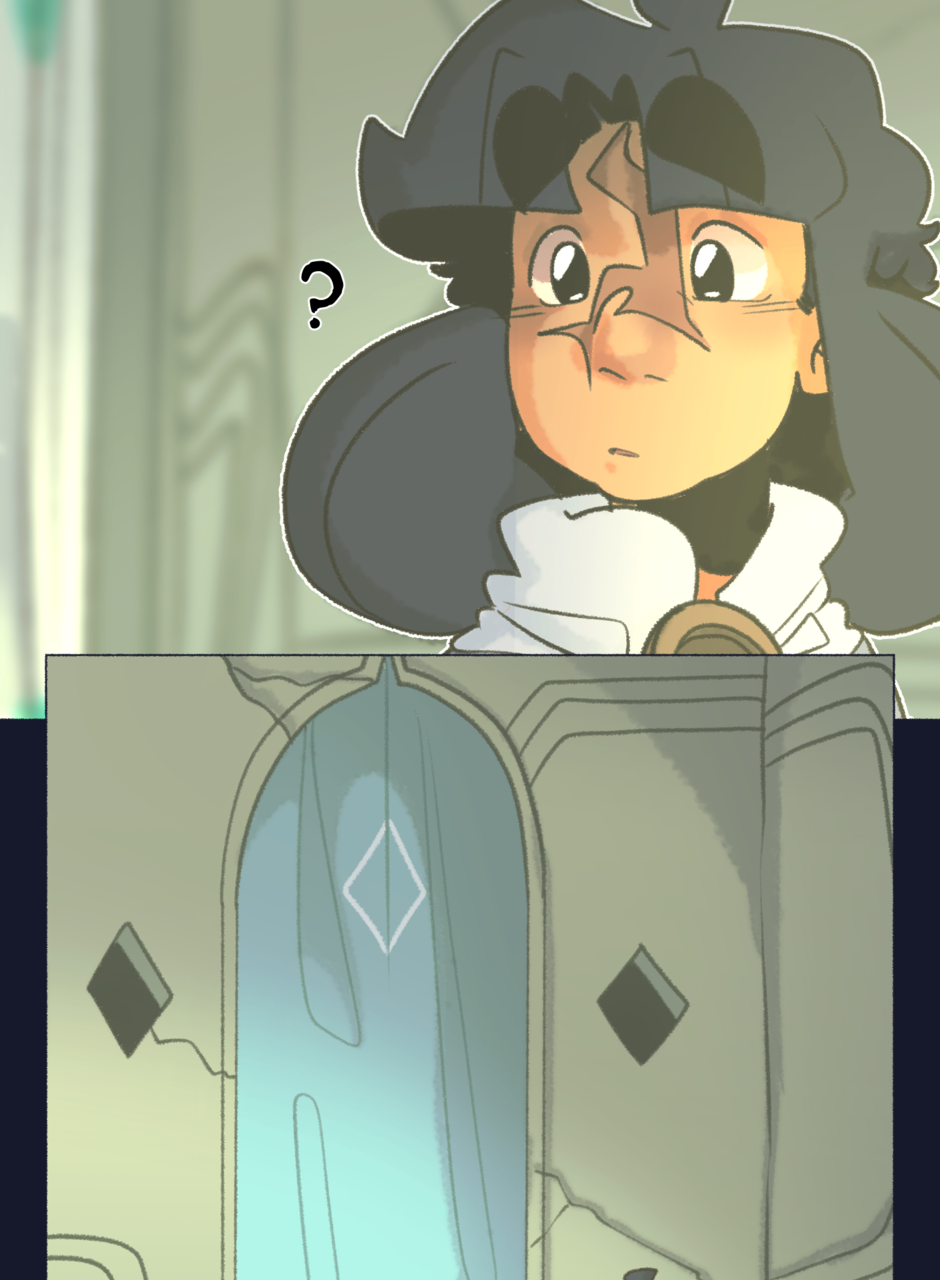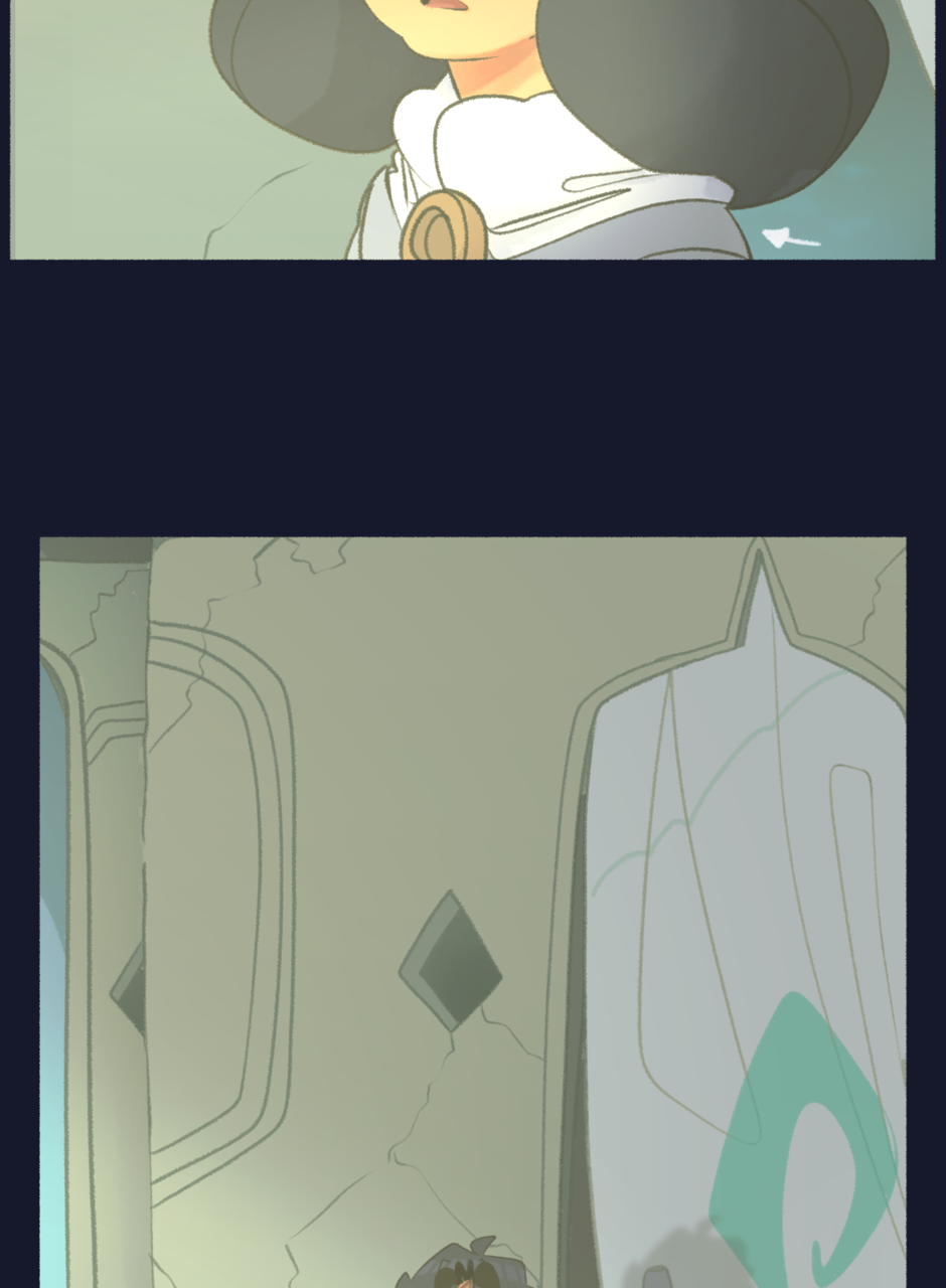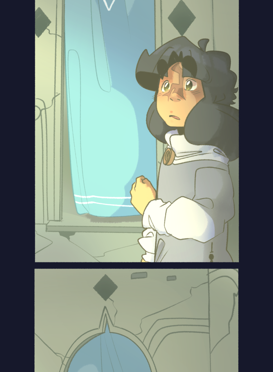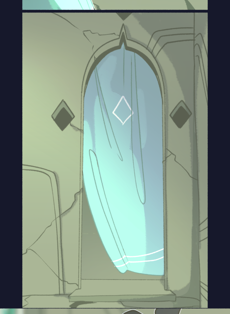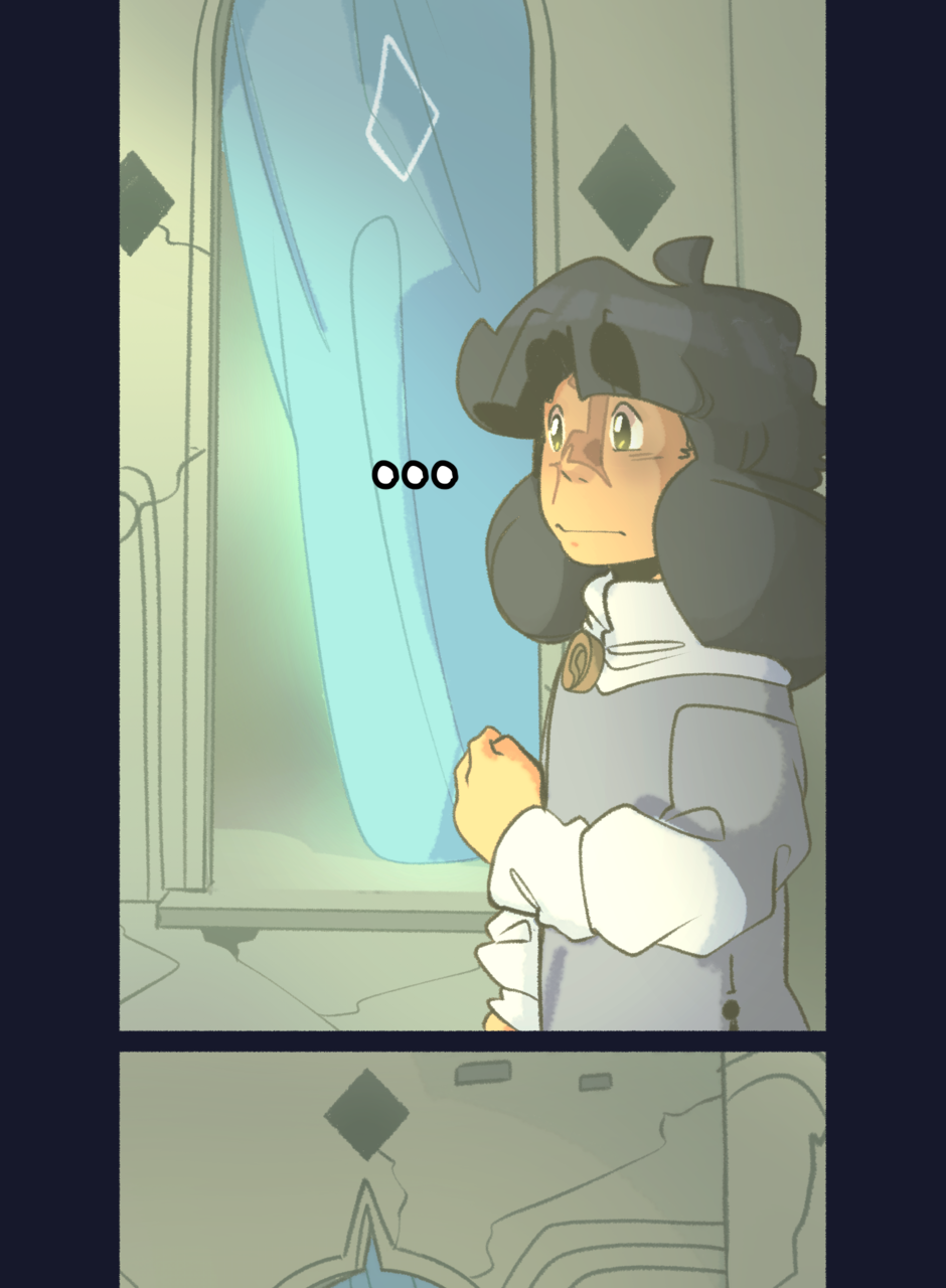 they turn and look over to another doorway,