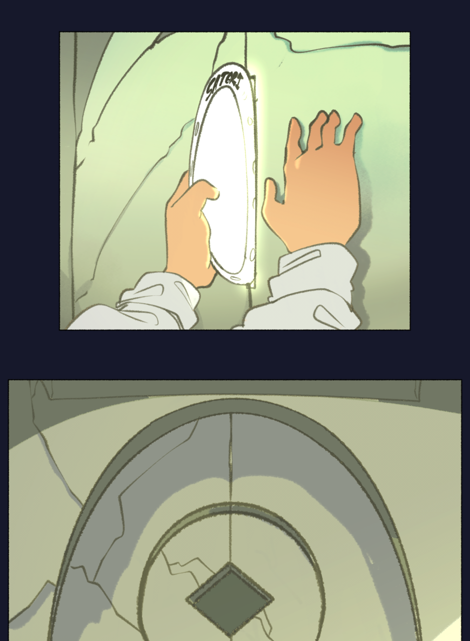 They realize the hole in the door is about the size of the plate,