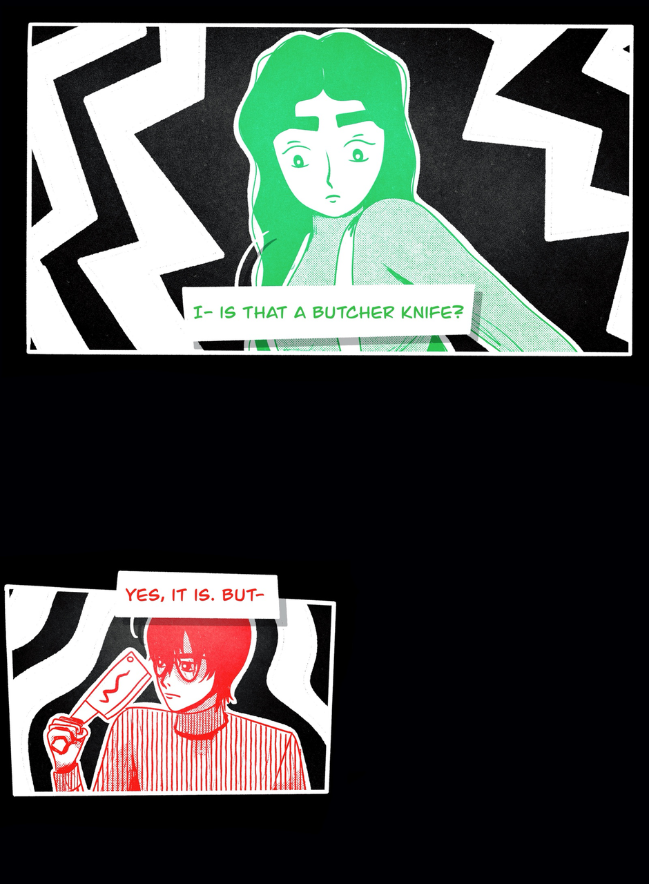 Set within the In-Between and a small town in Maine in the 1970s, SPINES investigates the events leading up to the deaths of a failed musician, a strange woman named Lydia, and a mysterious man armed with a butcher knife.