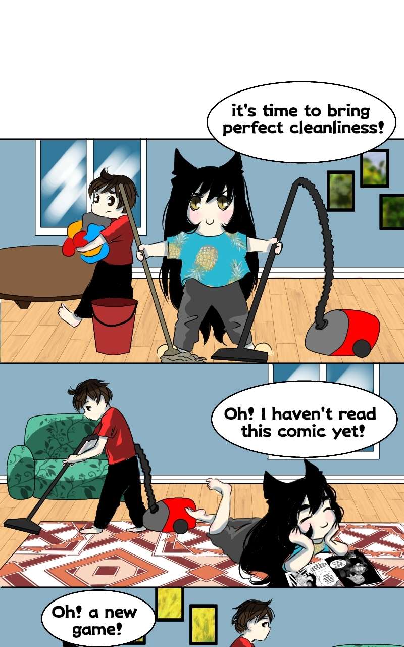 Sometimes I fall into the warm embrace of procrastination, just like Kuro. The dust lies and I will lie down too