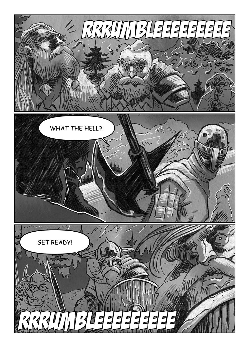 Hi guys! This is the first chapter of "Maka", for the regular episode i've chosen a black/white and grey style. The "North", invaders and marauders, roaming in Maka, a legendary land pervaded by a mysterious energy, are about to have a warm welcome...