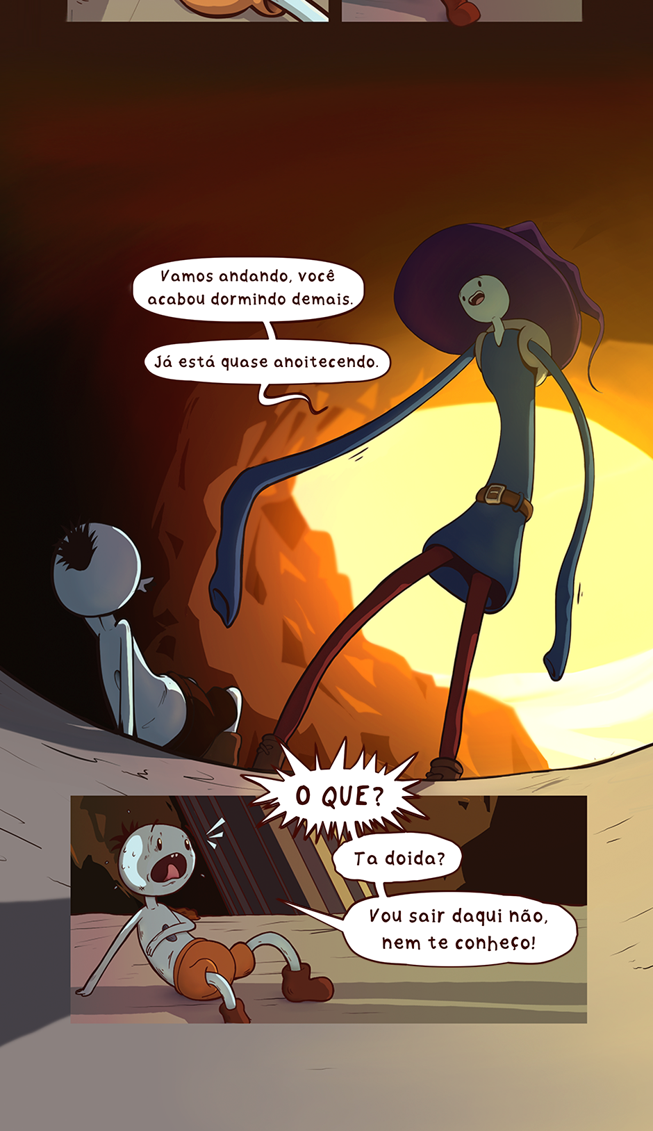 O primeiro encontro desses dois personagens foi um quanto desesperador para o garoto, imagina acordar e encontrar uma mulher azul de chapelão na sua frente.