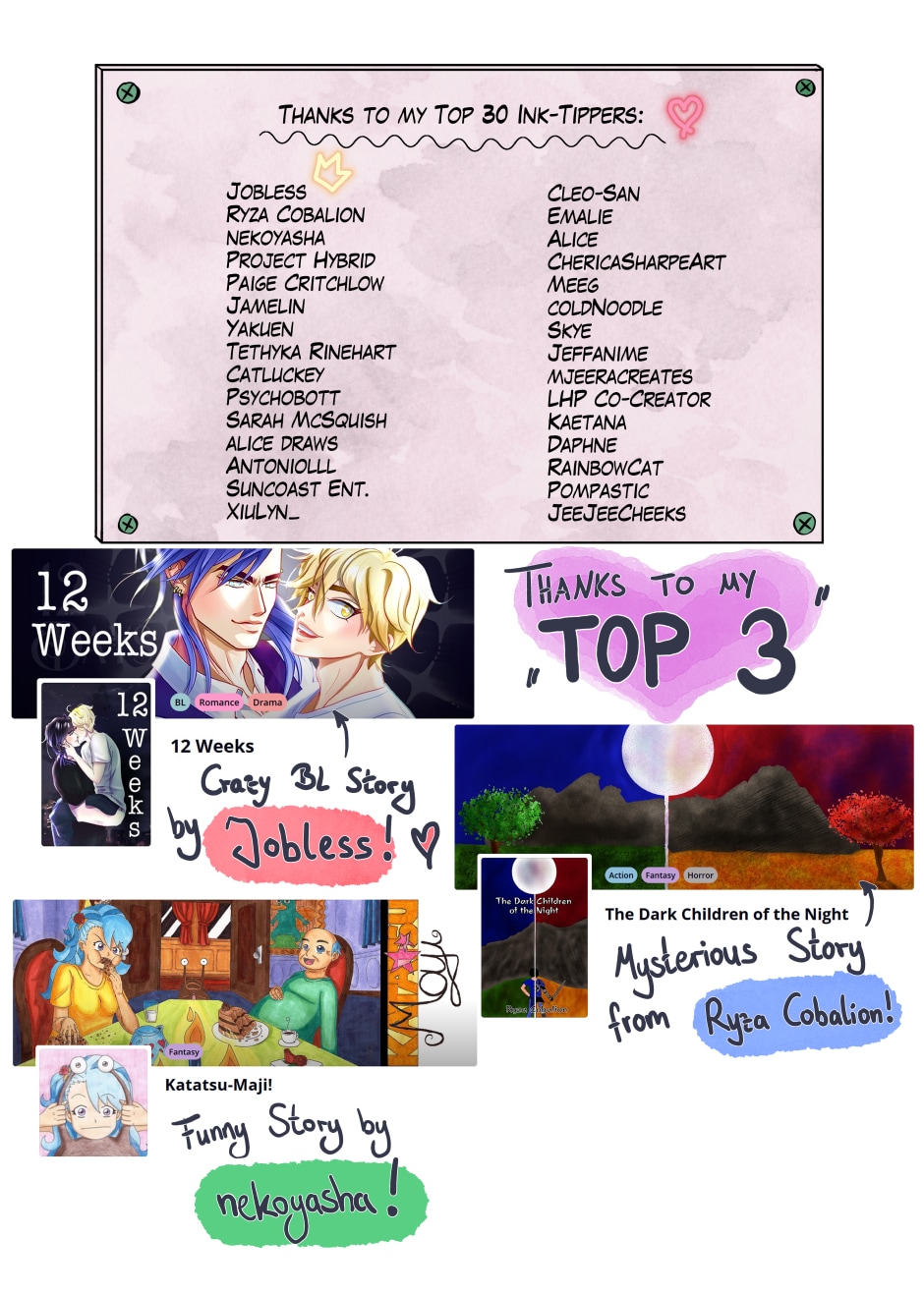 I will roll out all the Inksgiving goal-prizes bit by bit. My TOP 30 Ink Tipper list is all mixed up now :))) !! Thanks to everyone! Next in line is an episode Pick Up Line :) see you there!