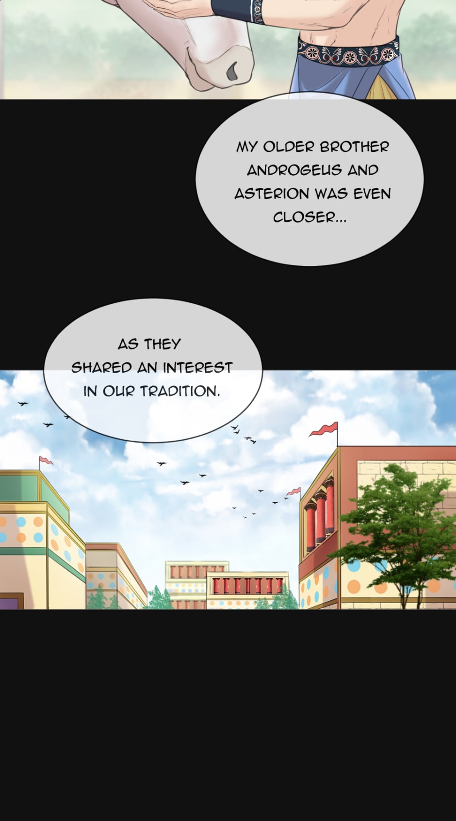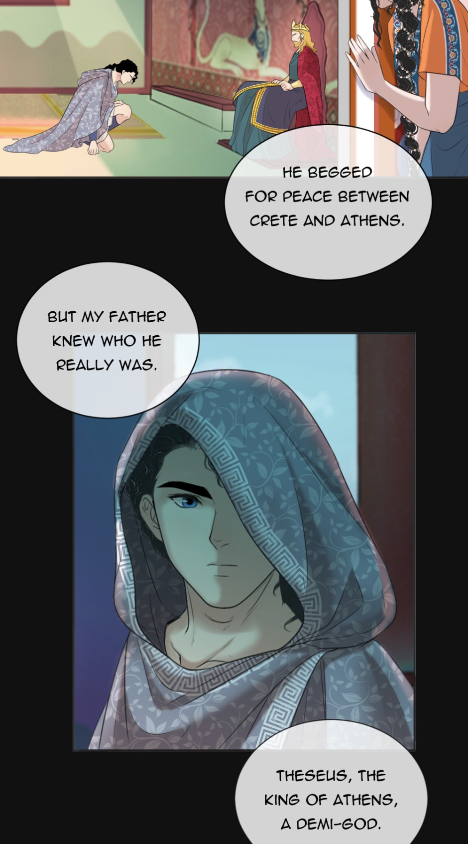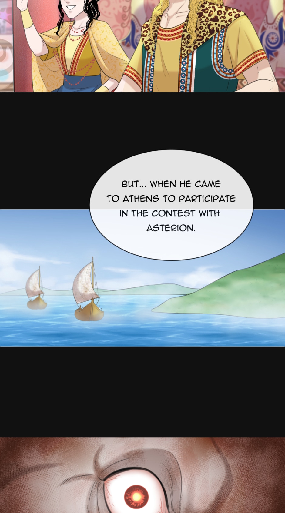 Dionysus- the young boy who grew up on a small island with no memory of his family and his constant strange nightmares and dreams. One day, Dionysus decided to go on a journey to find his family and discover who he really was, alongside the love of his life, Ariadne.