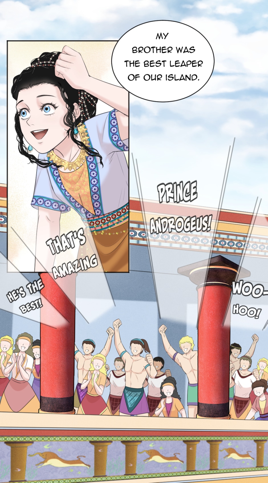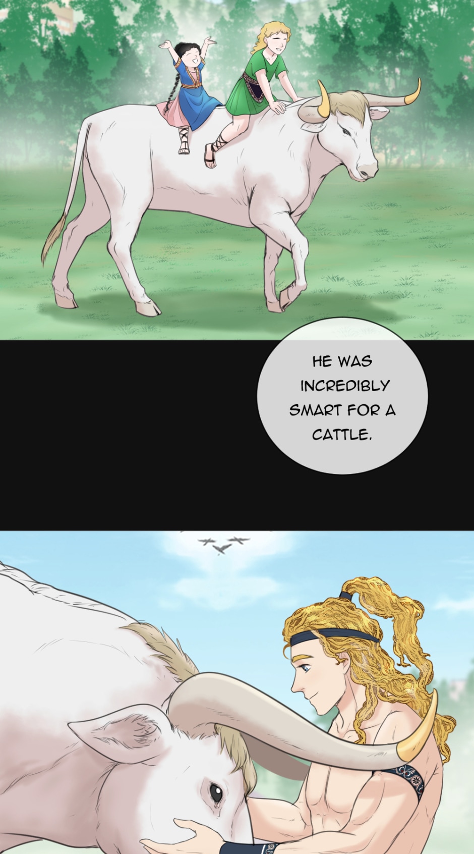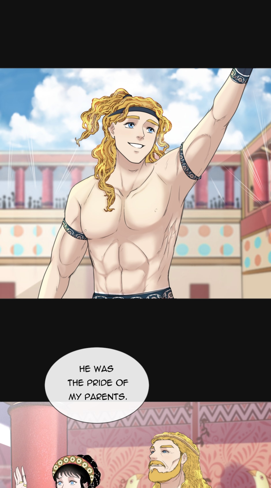 Dionysus- the young boy who grew up on a small island with no memory of his family and his constant strange nightmares and dreams. One day, Dionysus decided to go on a journey to find his family and discover who he really was, alongside the love of his life, Ariadne.