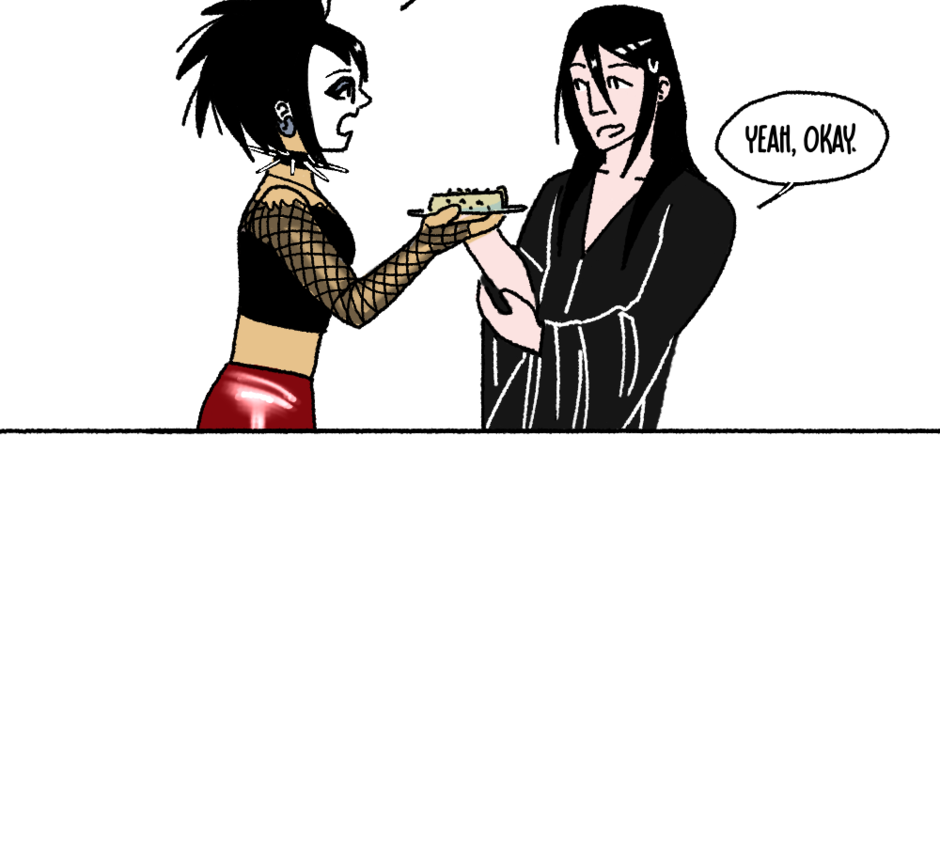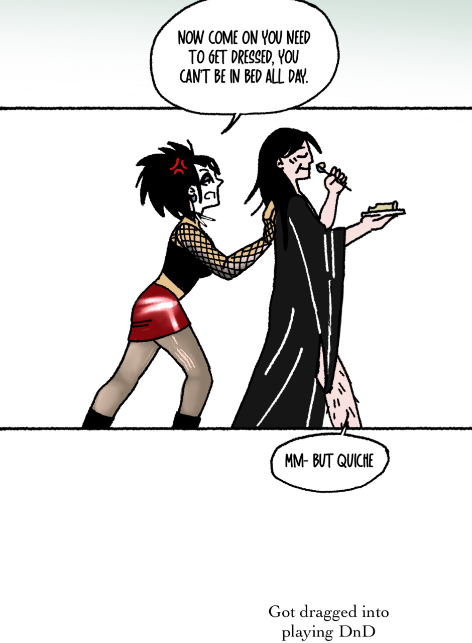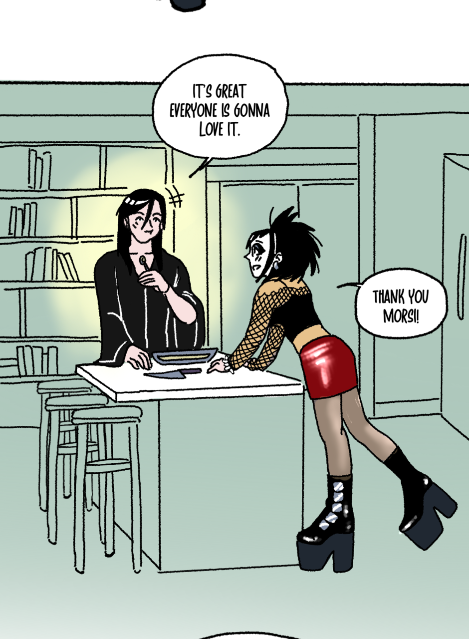 For goths, music nerds, and people who just admire the culture. Morsi after midnight is full of puns, jokes, and references to your favorite bands and batsnests.
