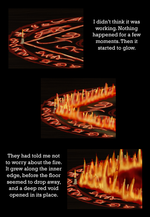 Fire is a pain. I don't like it. So I'm gonna be updating this as much as I can, until I feel like there's enough to be going on. Then I'll try to update with a few pages each week.