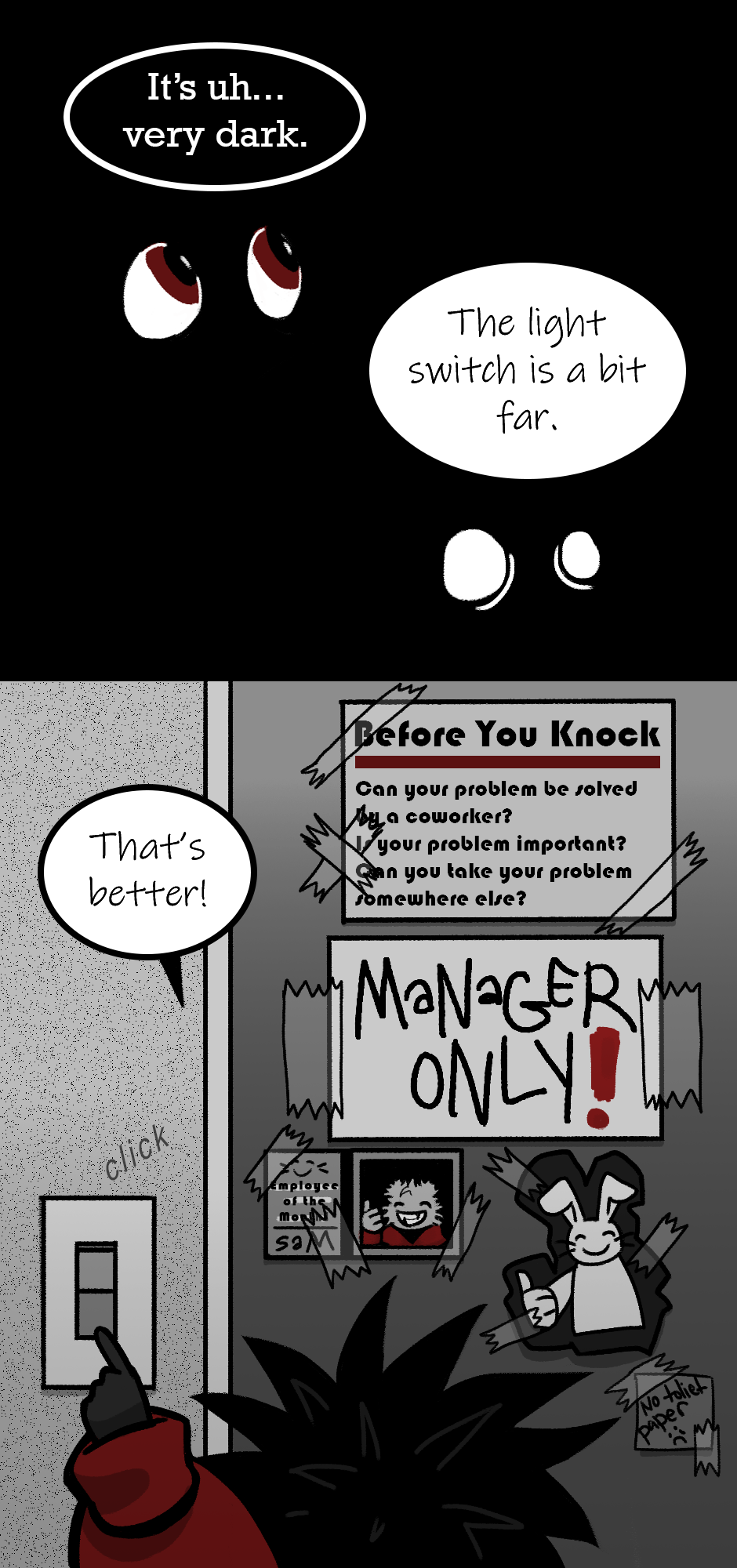 Steak is a big fluffy bunny who lives with their aunt in a city full of walking, talking rodents. With no predators to speak of, this underground society is paradise… especially because Steak gets to eat their favorite food every single day! Opening a fresh can of vegetable substitute is so exciting- but why does everyone else feel so sick?