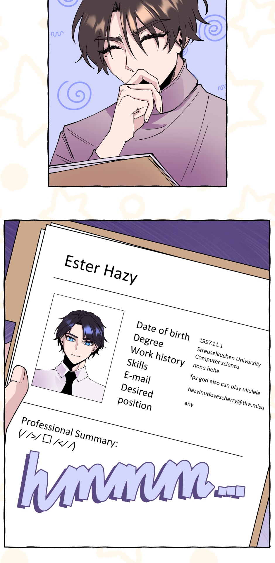 The CV 😂 and yeah. I agree. Tiddies 😚👌 *chef kiss*