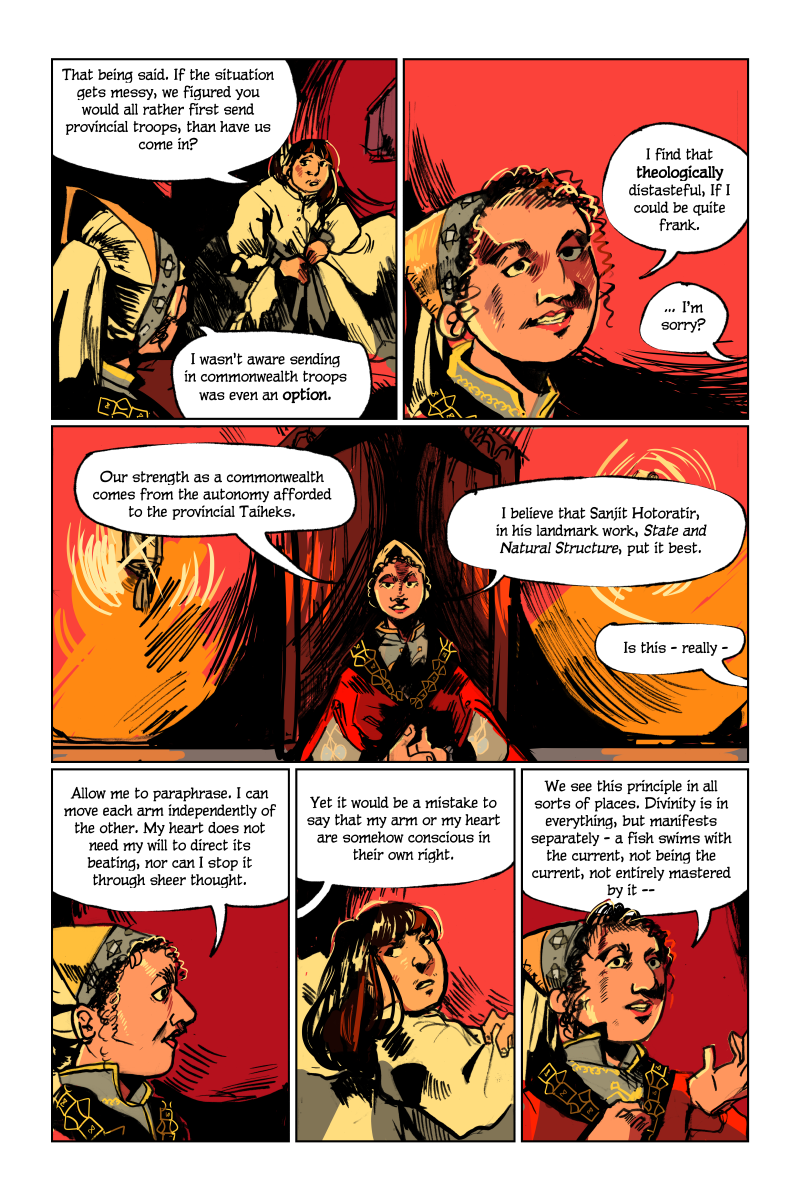 Despite the promises of the last twenty years, the Isahek river is flooding again. When a tax collector is shot by its banks, the provincial court must respond to the rising violence. The members of the court vie for control, all the while their system of governance is on a steep decline. A story about environmental disaster, “rational” governance, and what it means to have power over death.
