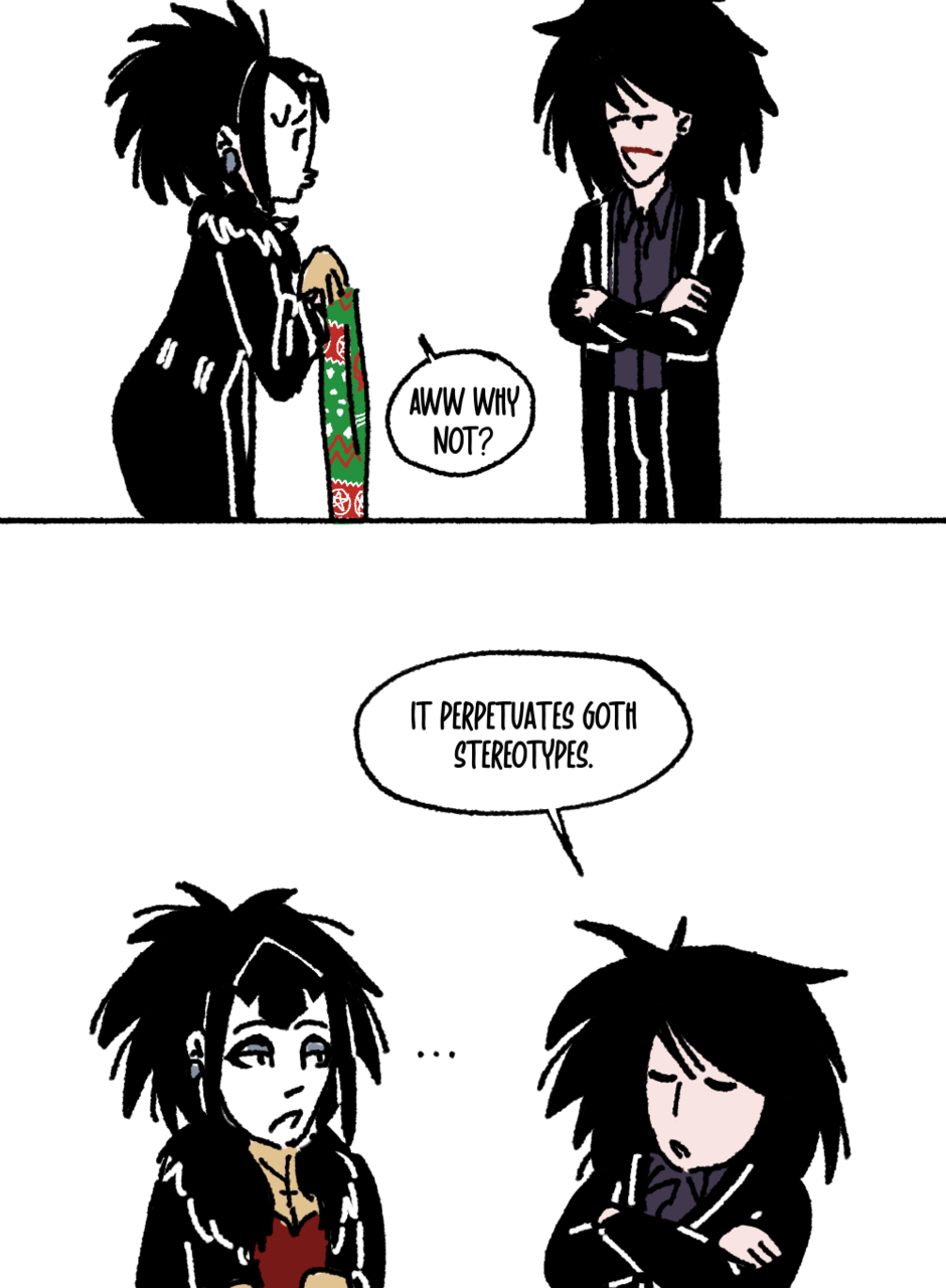 For goths, music nerds, and people who just admire the culture. Morsi after midnight is full of puns, jokes, and references to your favorite bands and batsnests.