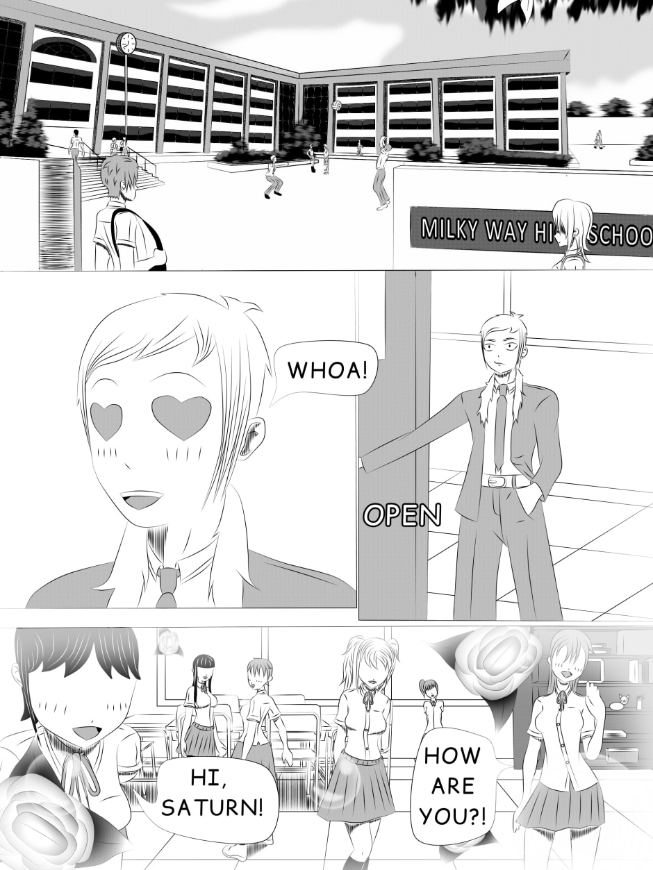 The story talks about our hero Earth, who studies at the Milky Way High School and suffers from a human virus that no one else has been infected with.