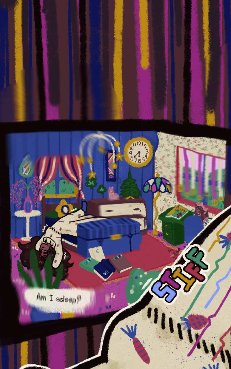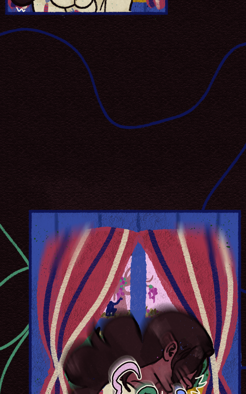 The squiggle on the cough text ❤ Oh no, why does Esmeralda look concerned? Hope it's no one bad. How long did it take you to do all of those squiggly lines connecting together? Feels like it represents Esmeralda's mind unraveling.