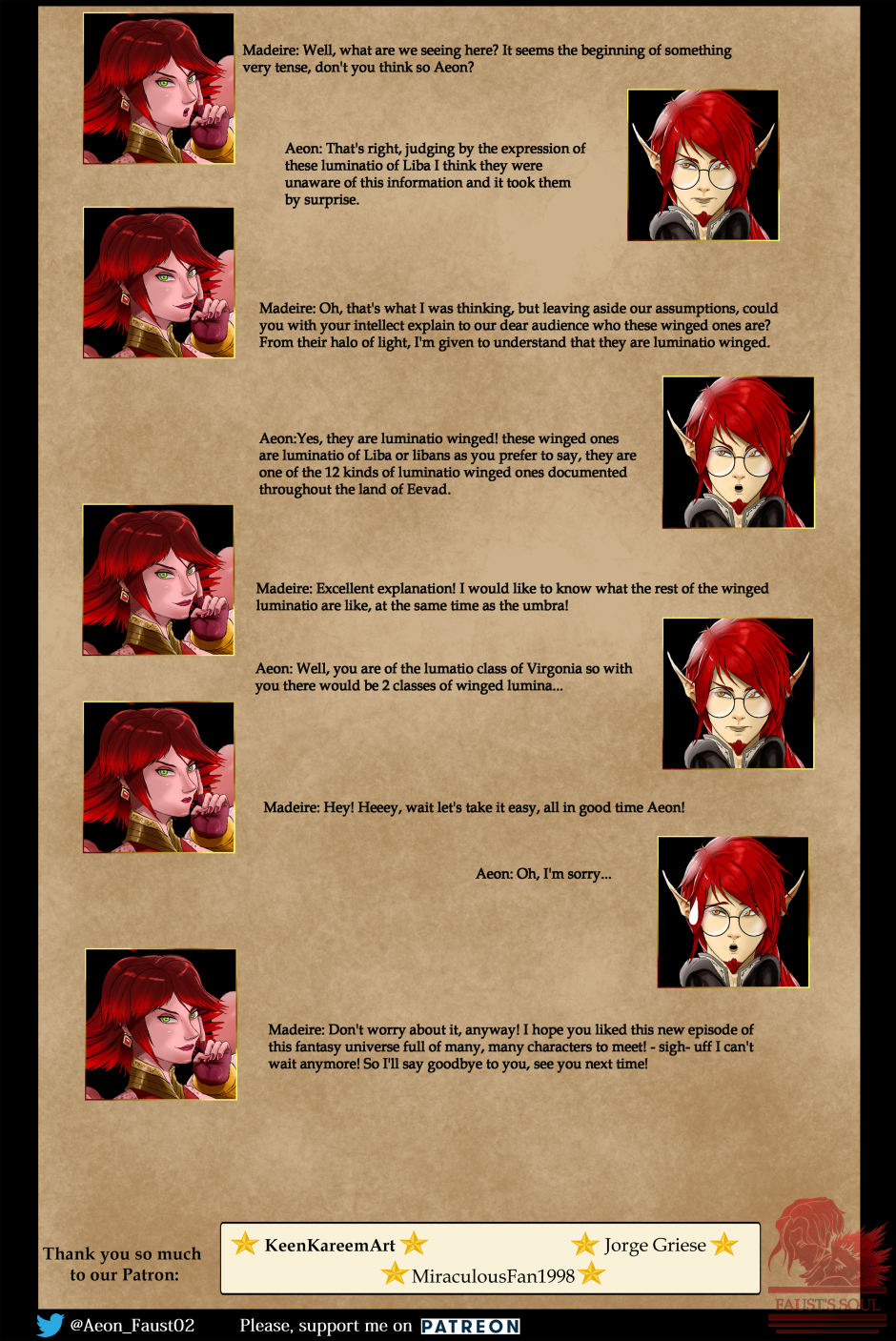 The land of Eevad, a vast fantasy world with fantastic winged bird humans and elves, full of stories, conflicts, and mysteries, lies a winged half-blood named Fausto whose power and existence is due to his winged Luminatio blood and winged blood Umbra. Confined for 20 long years, the winged half-blood awakens to complete his revenge against those who sentenced him and deprived him of his freedom. Faust must discover the reason for his amnesia and try to remember his past in order to live in peace with himself, he will also meets a mysterious Royal Elvico magician named Aeon, who was waiting for his awakening, the intentions of this person are totally unknown and both on their journey try to trust each other, but the road is full of mysteries to solve, dangers and battles to fight, so I hope you like this story.