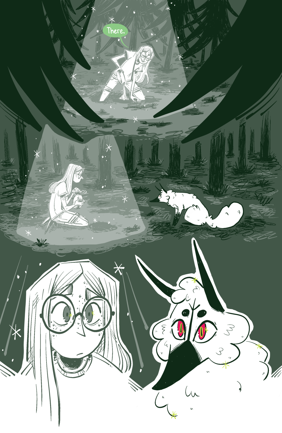 Fox in the Hall follows retail-employee-working-a-dead-end-job Foxtrot and her nonbinary childhood pal "The Revontulet" (nicknamed "Tuli"), a mythological fire fox responsible for creating the Northern lights, as they whisk her back to the magical land of Njord to prepare for the foretold battle with the villainous Mountain King.