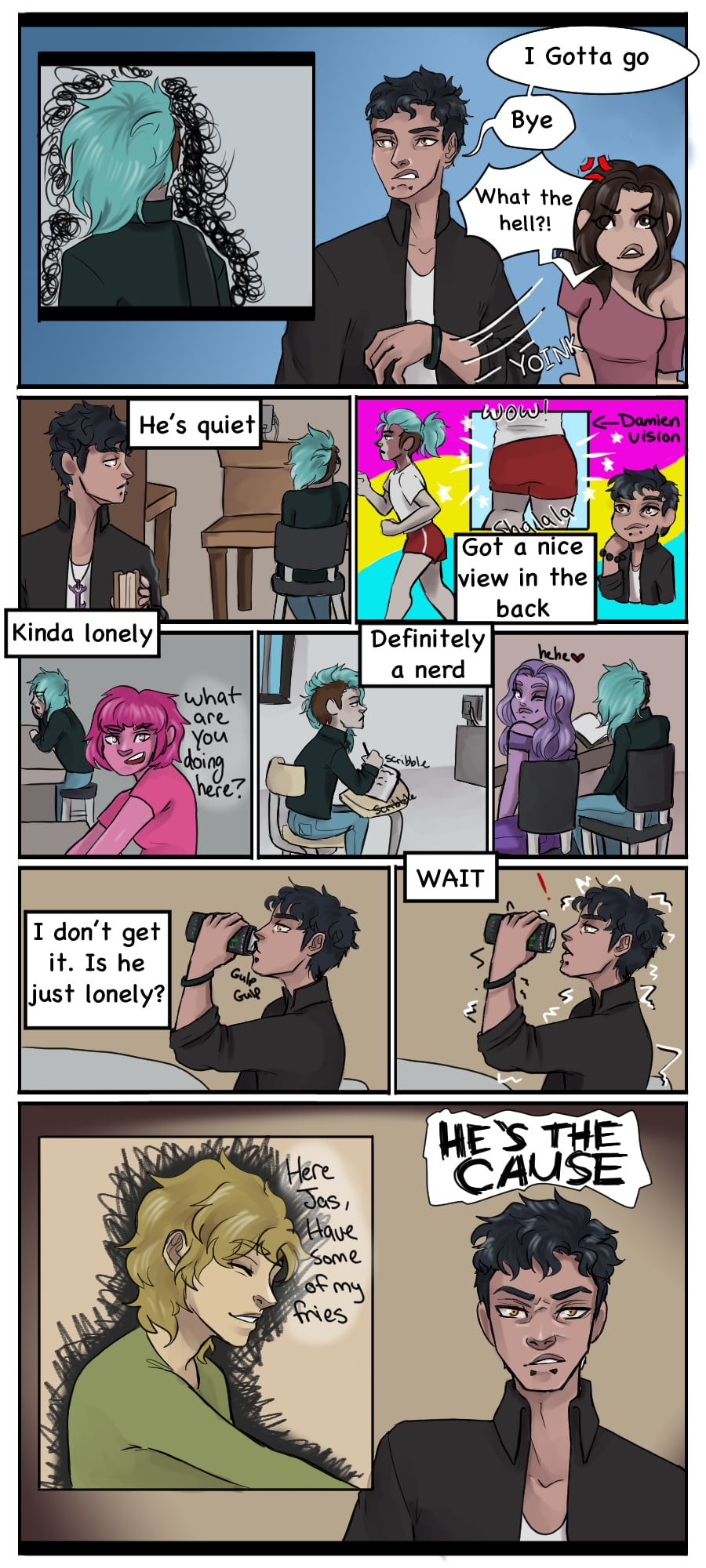 Jasper is just your average human obsessed with horror movies and obscure horror stories. Damien is your average demon dealing with the growing pains of coming into his own. When they meet it leads to the beginning of something much larger than either of them would have thought.