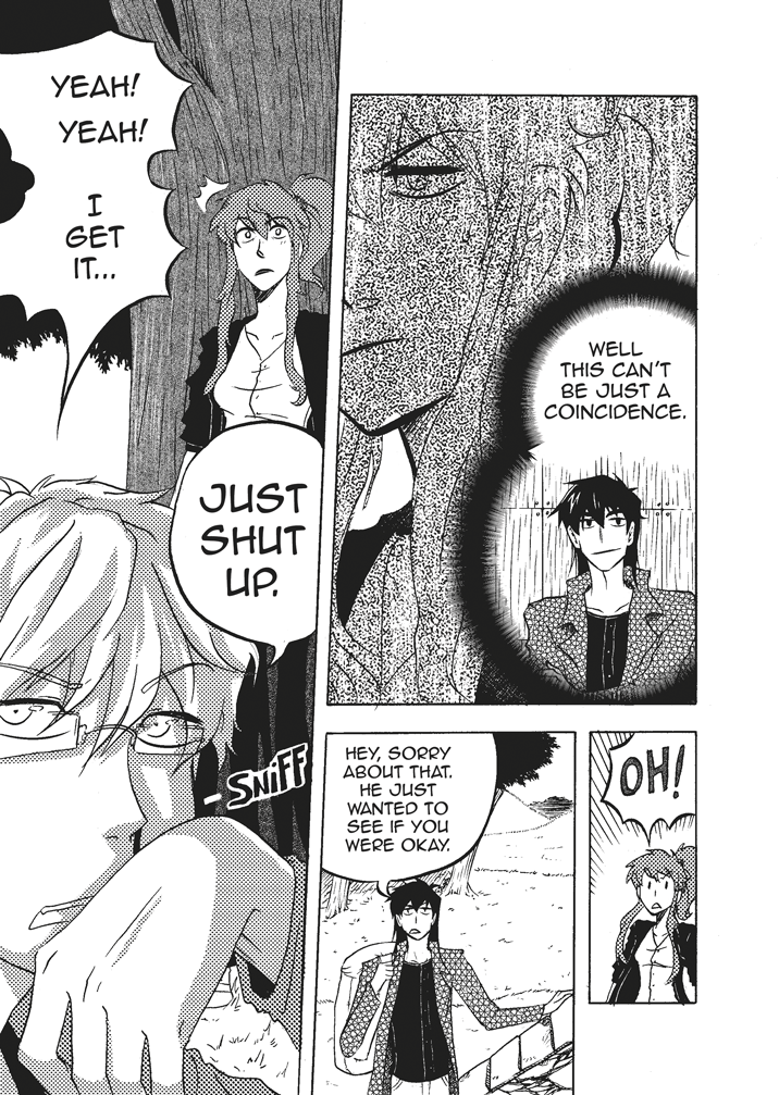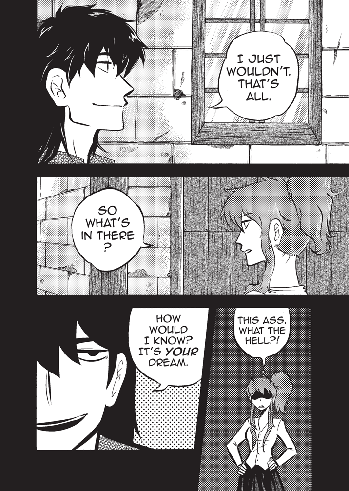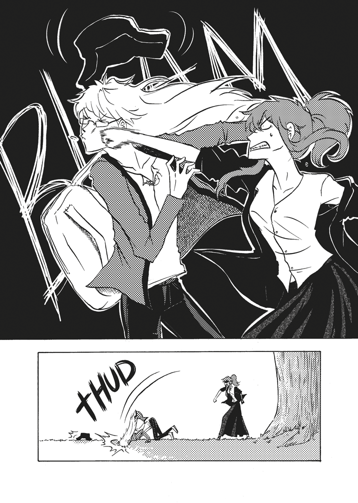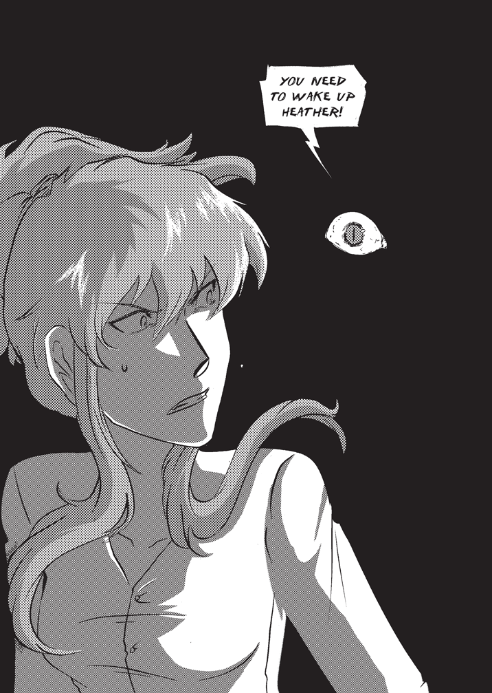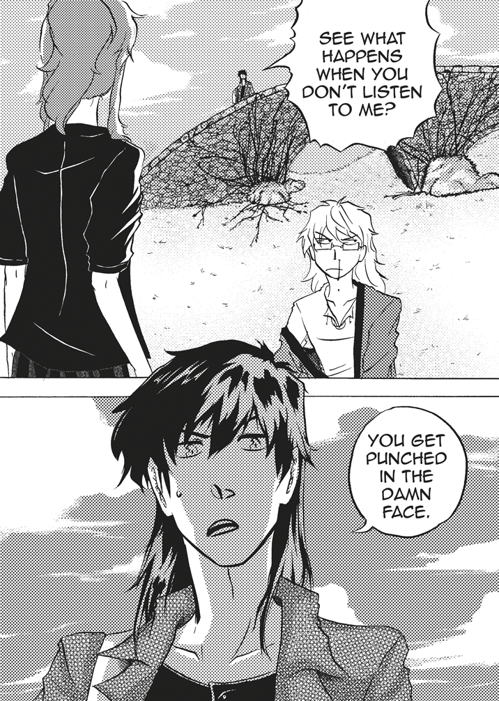 I like the looks of your characters also this idea with using symbol to communicate "flip your phone" is cool idea though it really doesn't need to be so "big" and take up space between pages because the red and symbol are easy not to miss.