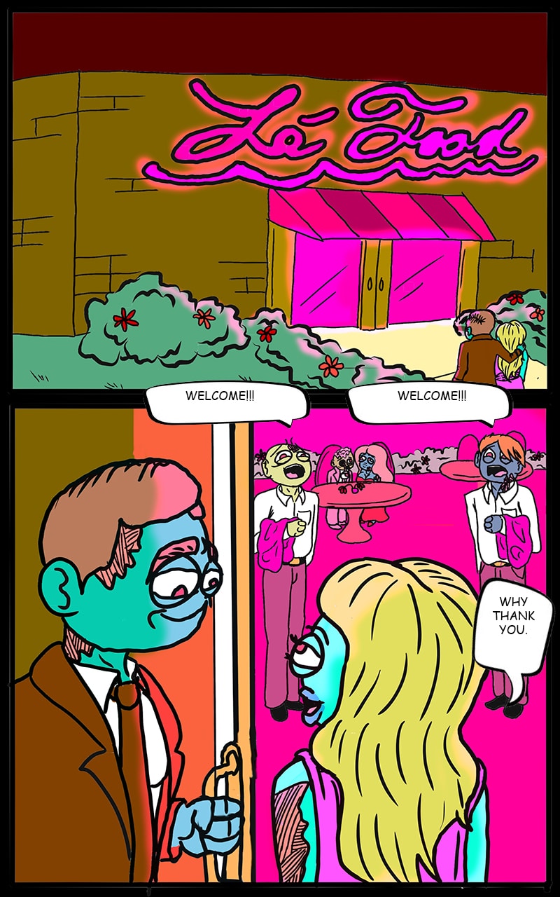THIS IS RANDOM. ZOMBIES RESUMING NORMAL LIVES AS IF NOTHING HAPPEND. NEVER SEEN THAT BEFORE, HOW ORIGINAL.