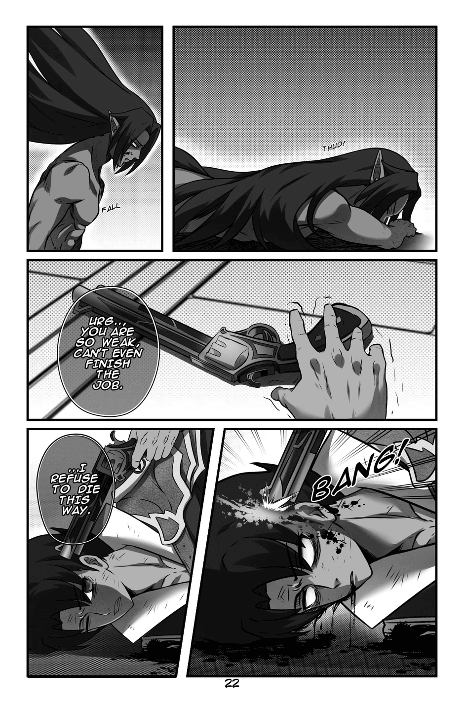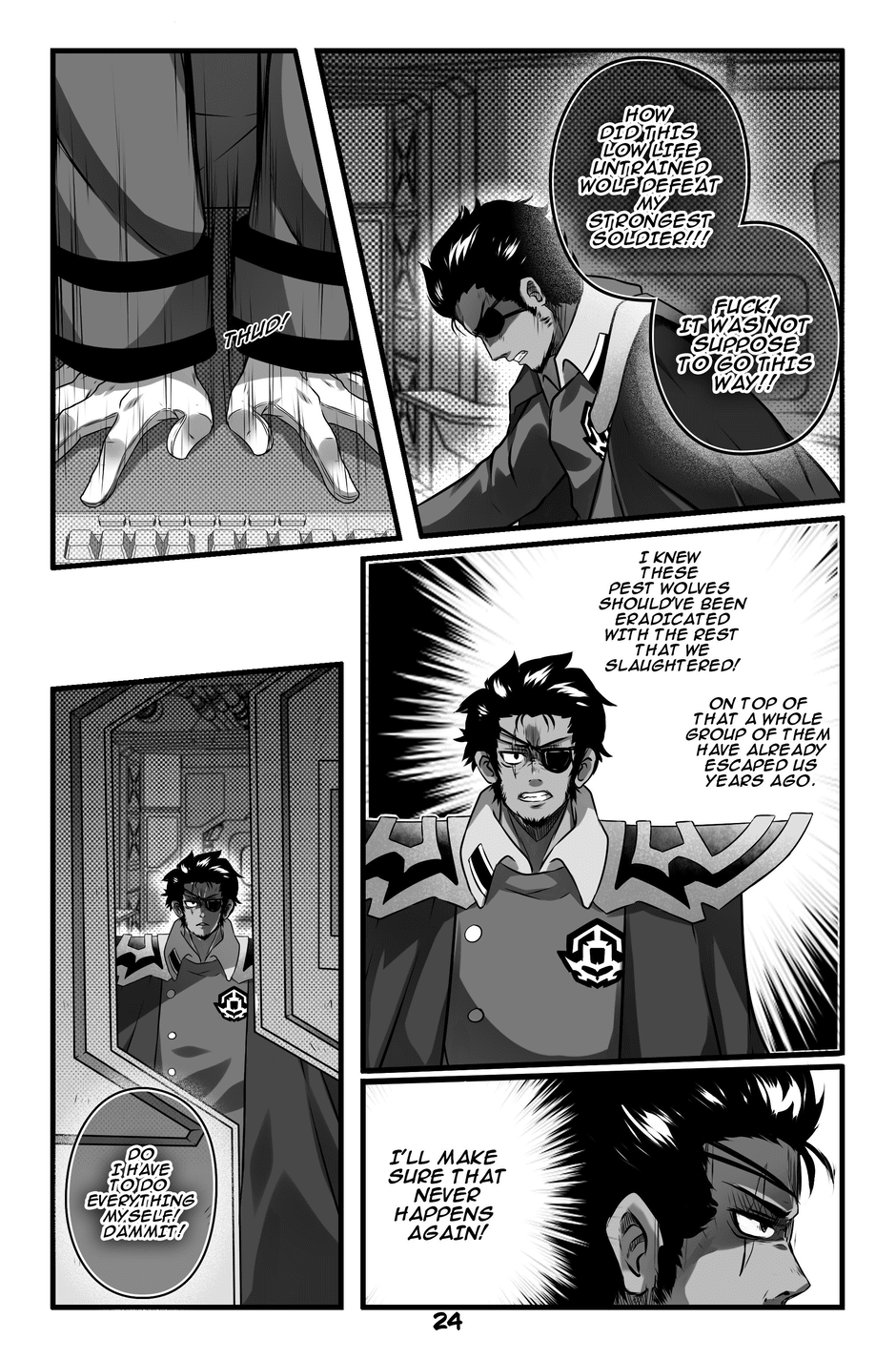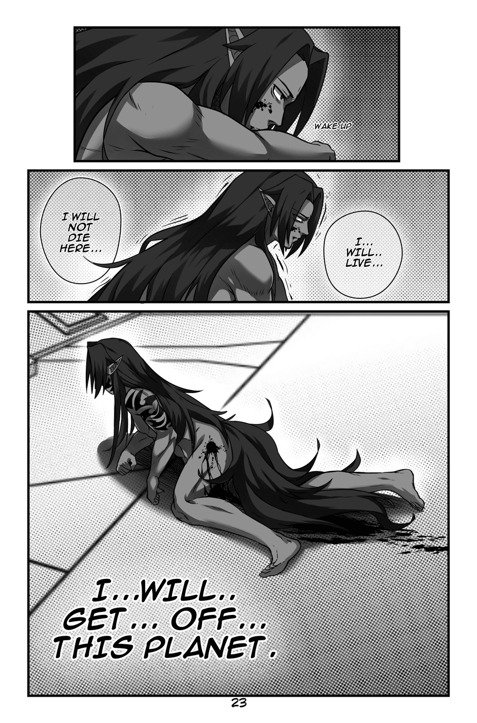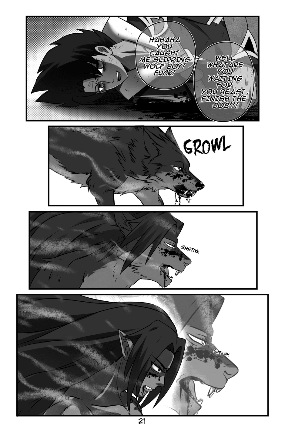 Quinn hears screaming and discovers a man with a tail like his, wounded and dying. The man, Jeikero, reveals that his daughter Bella has been killed by the heartless elites. Quinn introduces himself as a warrior of the Light Wolf Bloodline and realizes Jeikero is also a fellow Light Wolf. Jeikero gives Quinn his powerful sword, warning him about the elites' special silver bullets that prevent wounds from healing. Jeikero passes away, and Quinn promises to avenge their people and carries out his final wish.