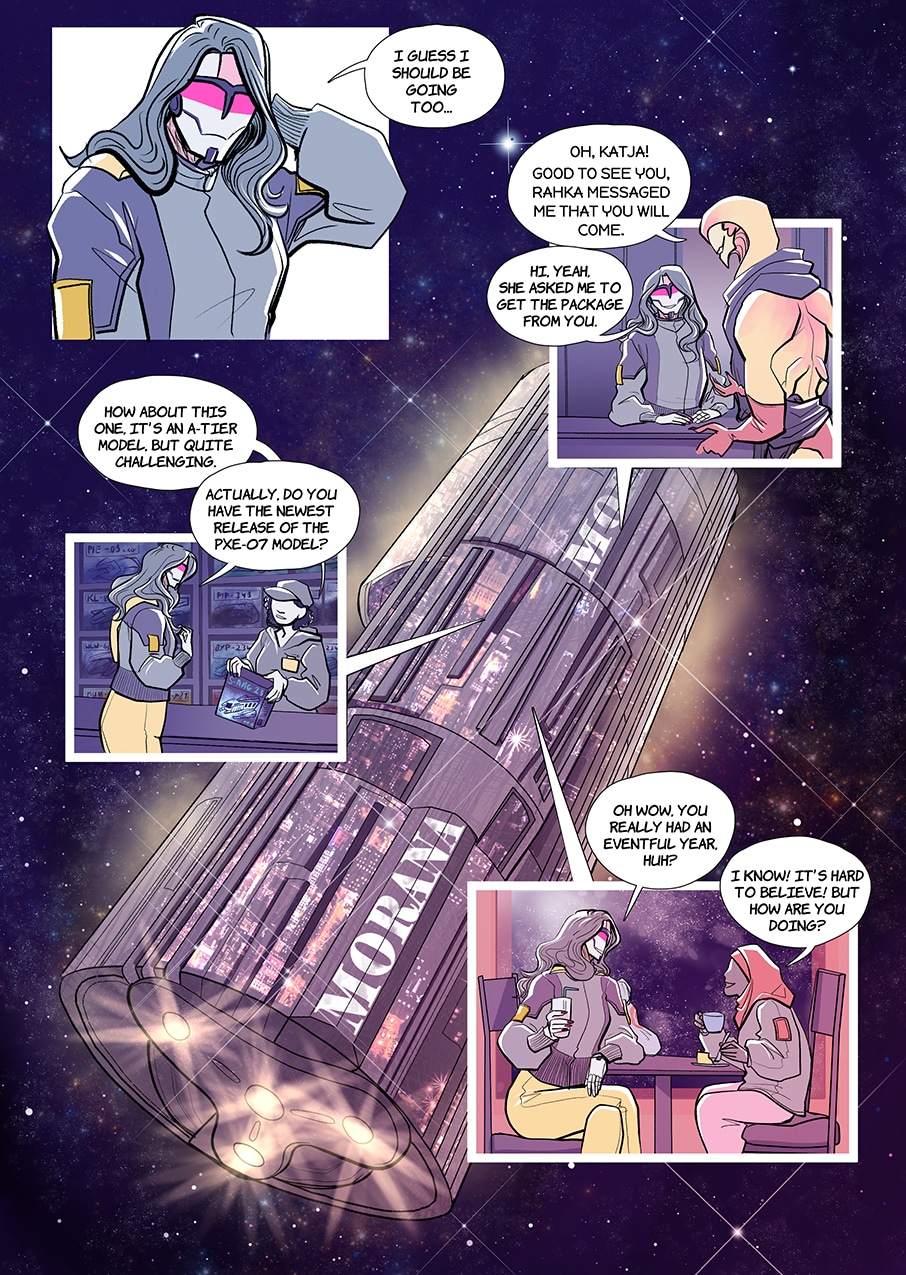 A space opera story about Katja, who wants to find her long lost mother, Anja. But how do you find a lost person when you have a whole galaxy to search through?