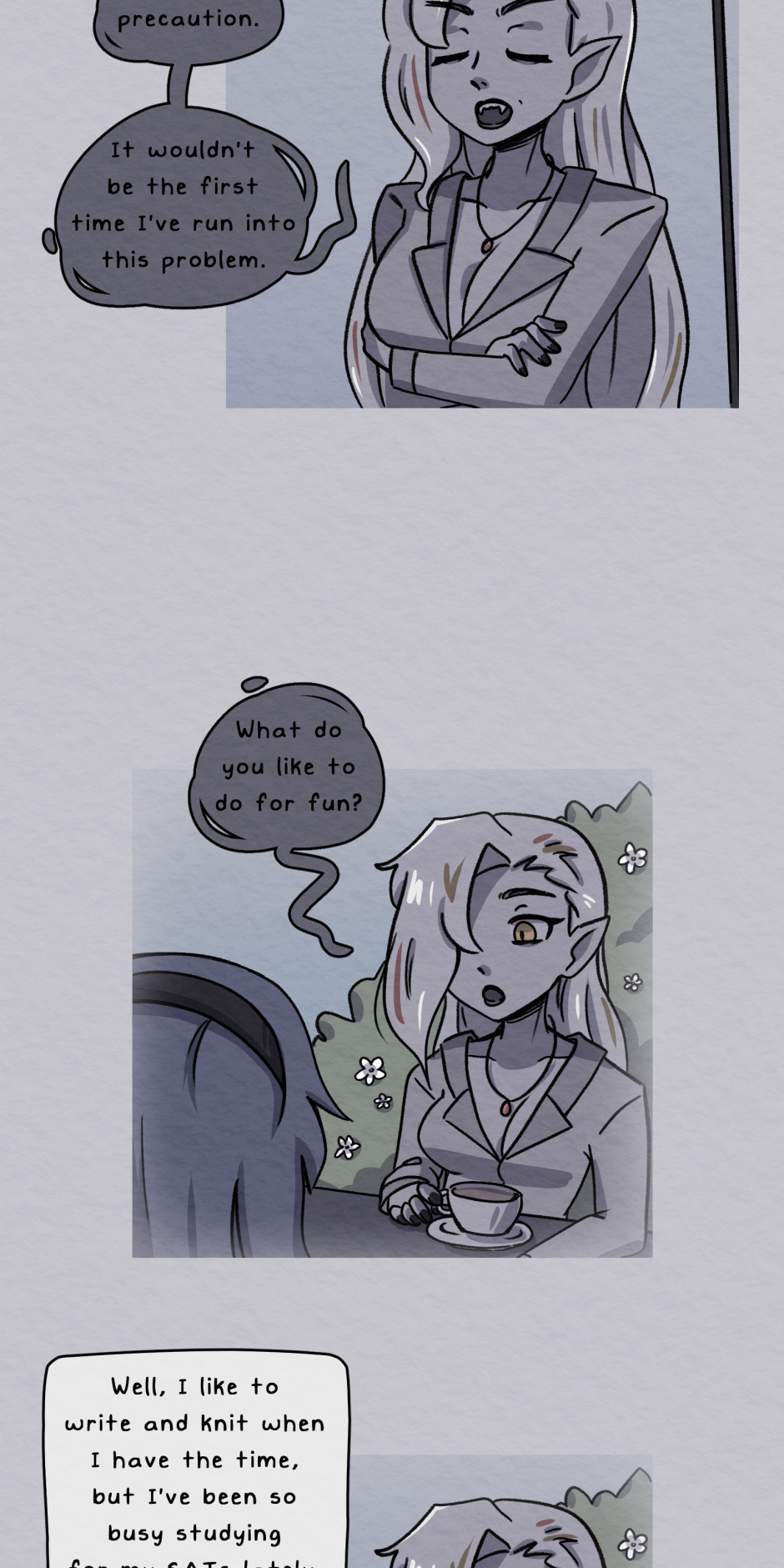 Note: I will be switching the upload schedule from every week to every other week. The holidays are consuming too much of my free time! Thank you again for reading and enjoying my comic :>