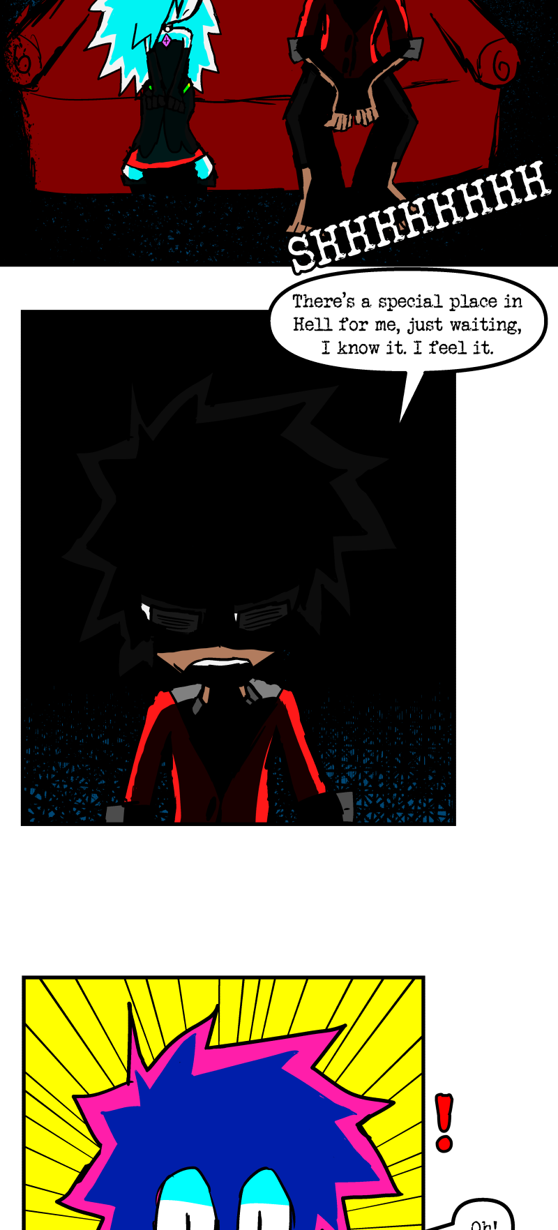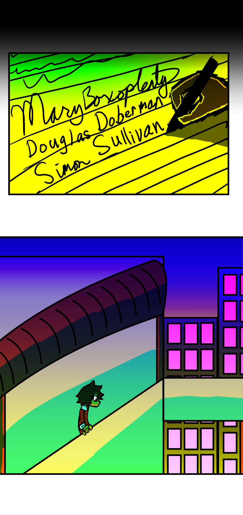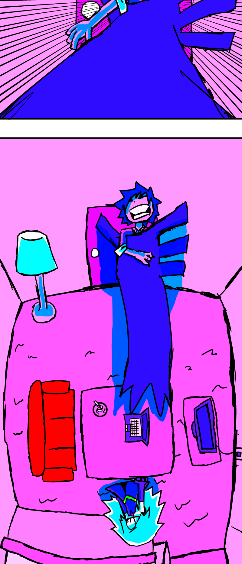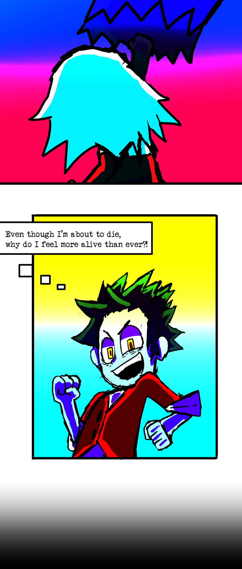 Simon is a 25-year-old, miserable alcoholic who hates himself for his past mistakes. His life takes a drastic turn when he is killed by a mysterious little girl who knocks on his door. He wakes up in a strange world where he must face his demons and is now set with the impossible task of killing God. Will he be able to overcome his guilt and defeat God? Find out in this psychedelic, highly saturated webcomic that explores themes of redemption, faith, and destiny!