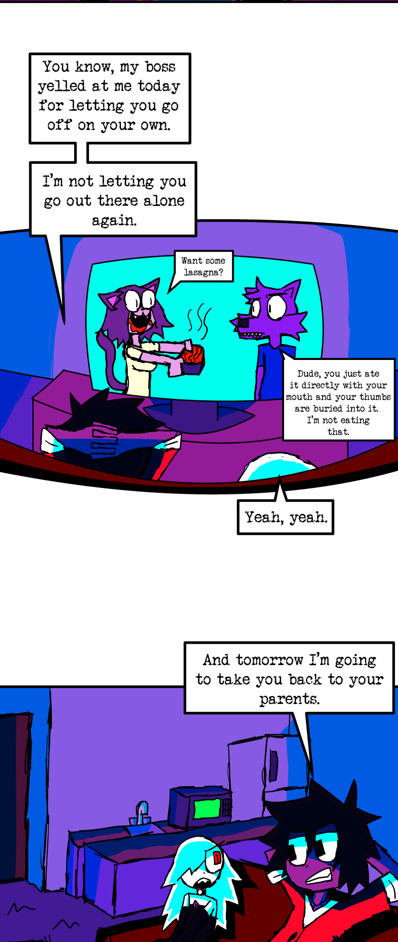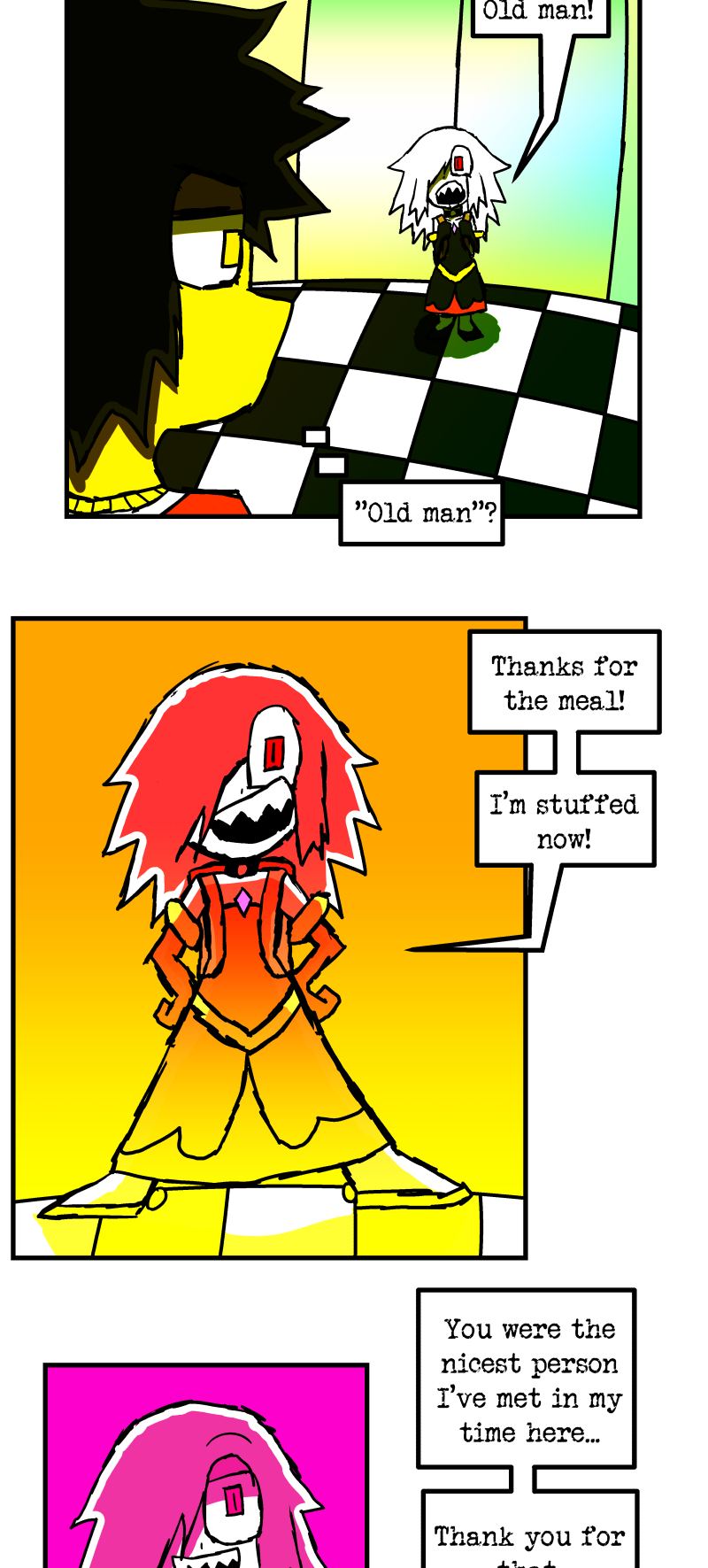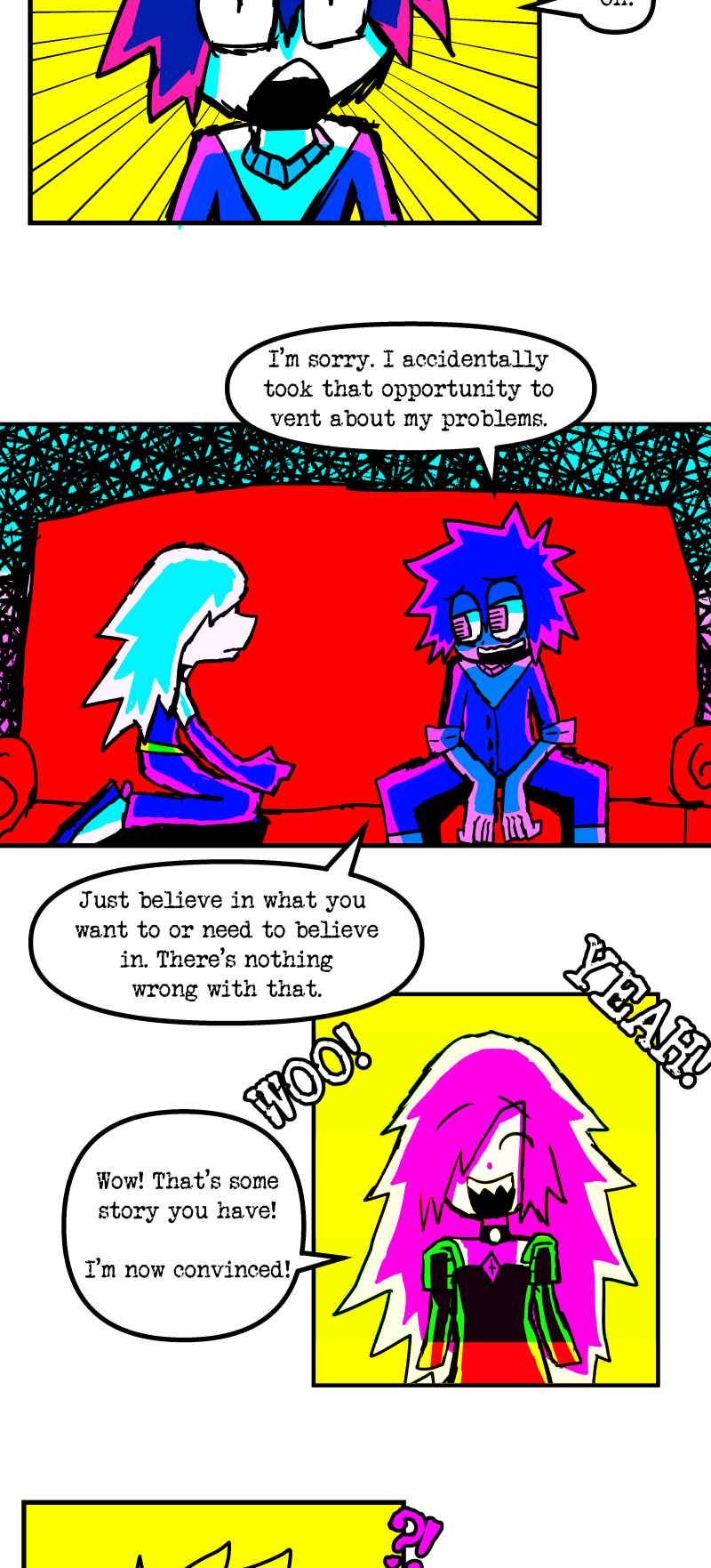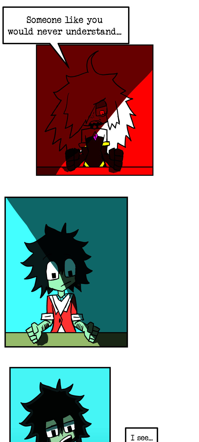 Simon is a 25-year-old, miserable alcoholic who hates himself for his past mistakes. His life takes a drastic turn when he is killed by a mysterious little girl who knocks on his door. He wakes up in a strange world where he must face his demons and is now set with the impossible task of killing God. Will he be able to overcome his guilt and defeat God? Find out in this psychedelic, highly saturated webcomic that explores themes of redemption, faith, and destiny!