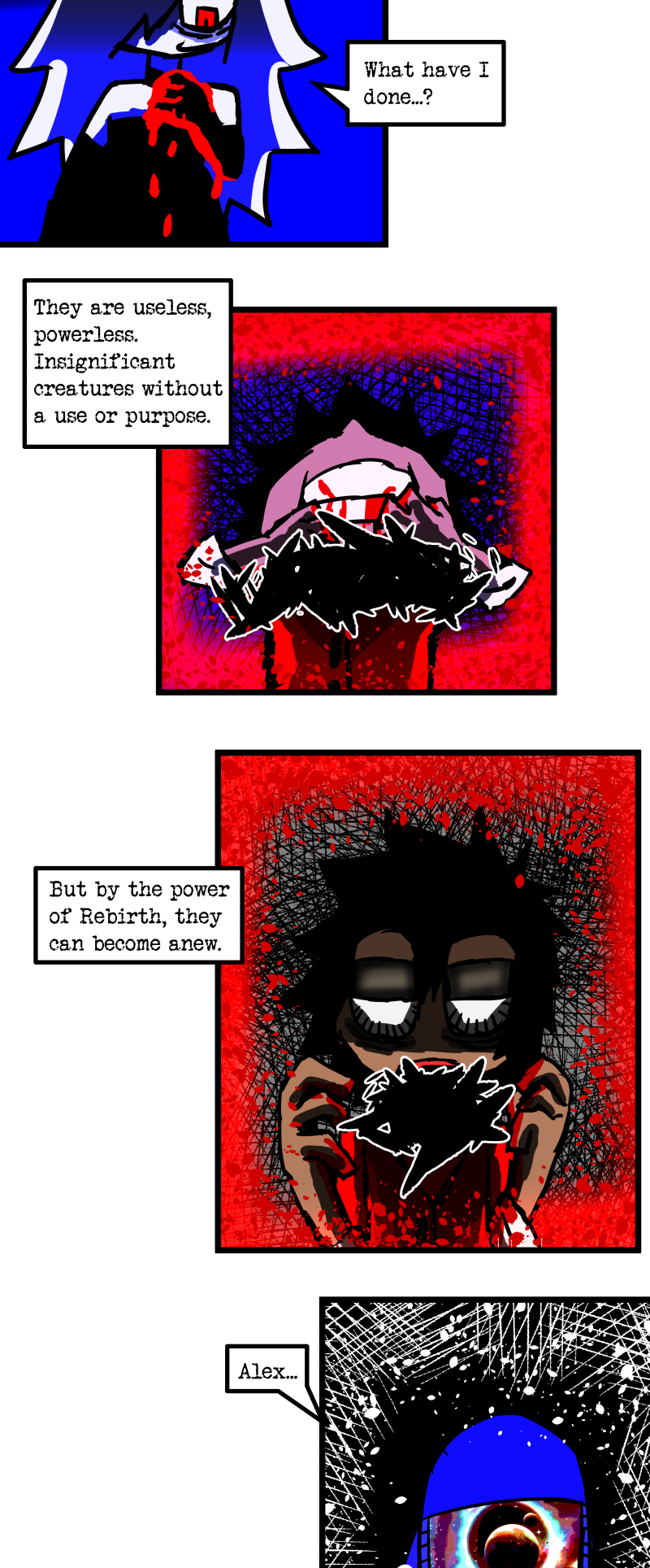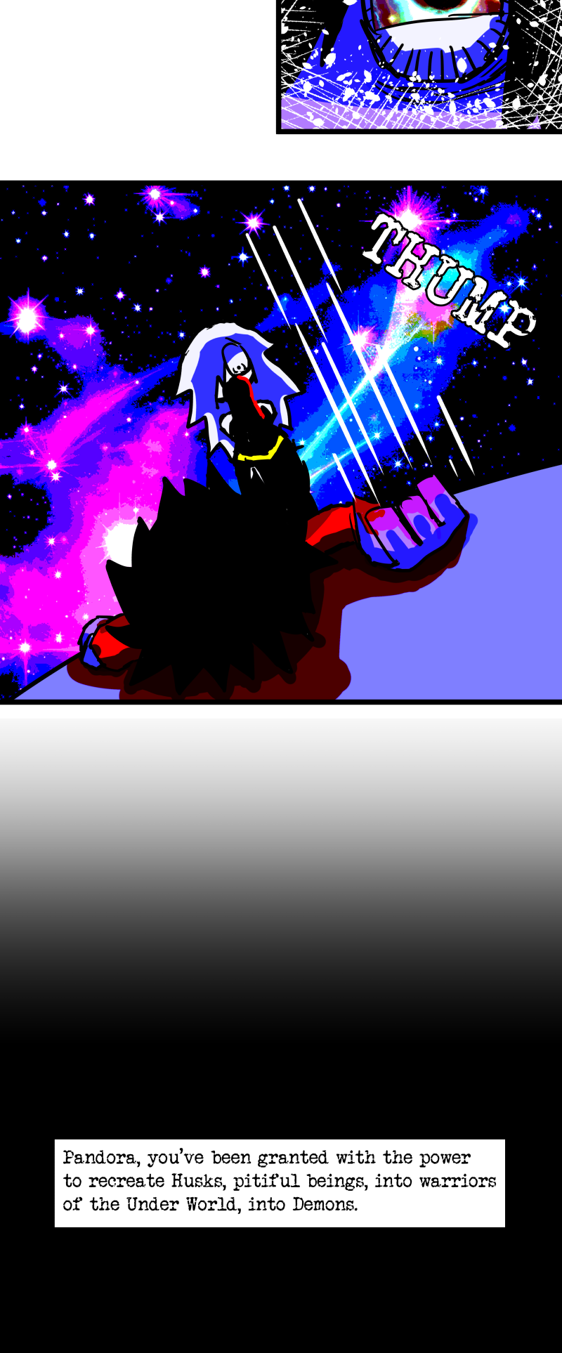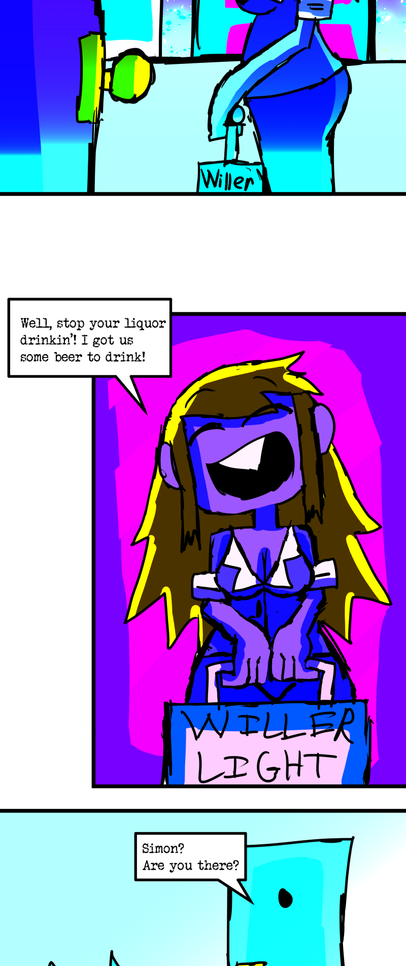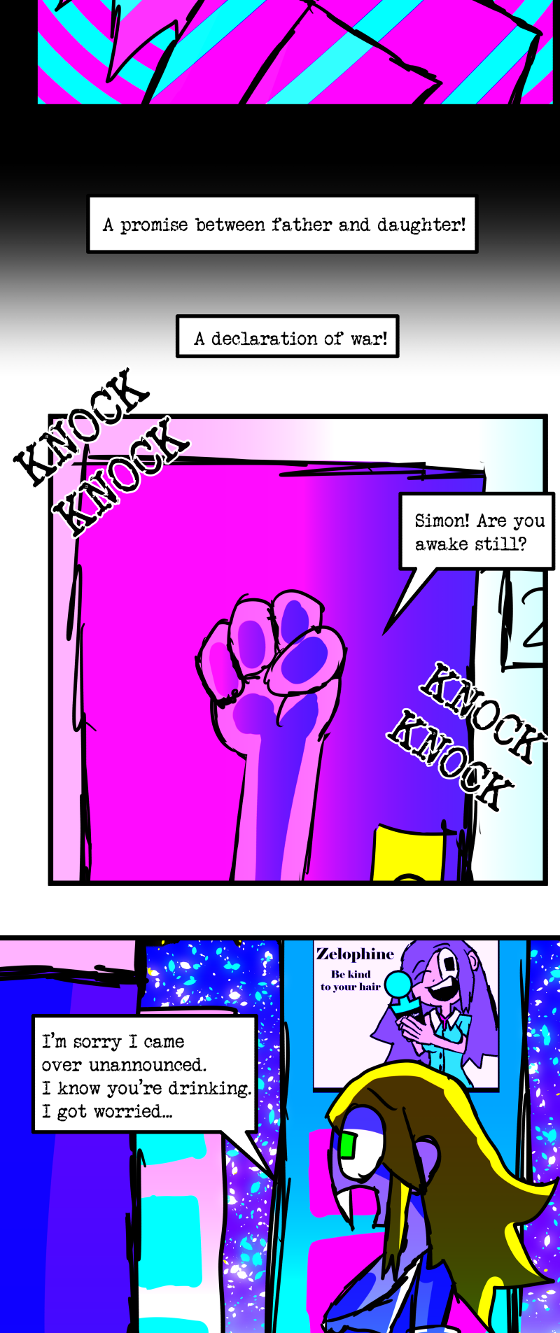 Simon is a 25-year-old, miserable alcoholic who hates himself for his past mistakes. His life takes a drastic turn when he is killed by a mysterious little girl who knocks on his door. He wakes up in a strange world where he must face his demons and is now set with the impossible task of killing God. Will he be able to overcome his guilt and defeat God? Find out in this psychedelic, highly saturated webcomic that explores themes of redemption, faith, and destiny!