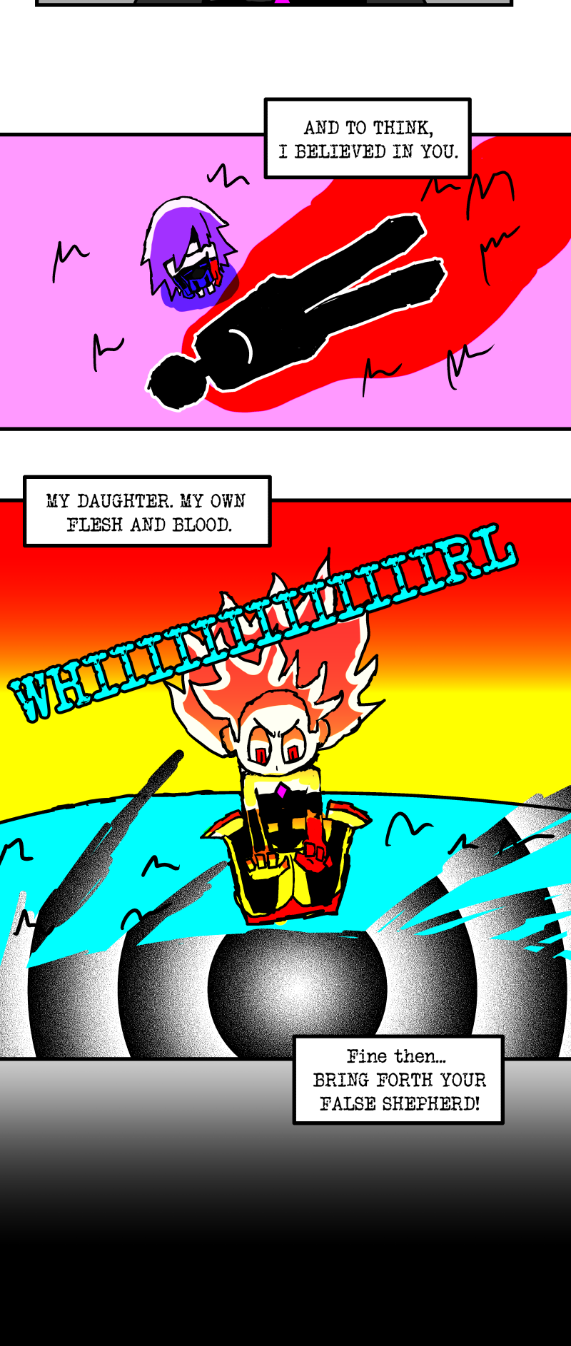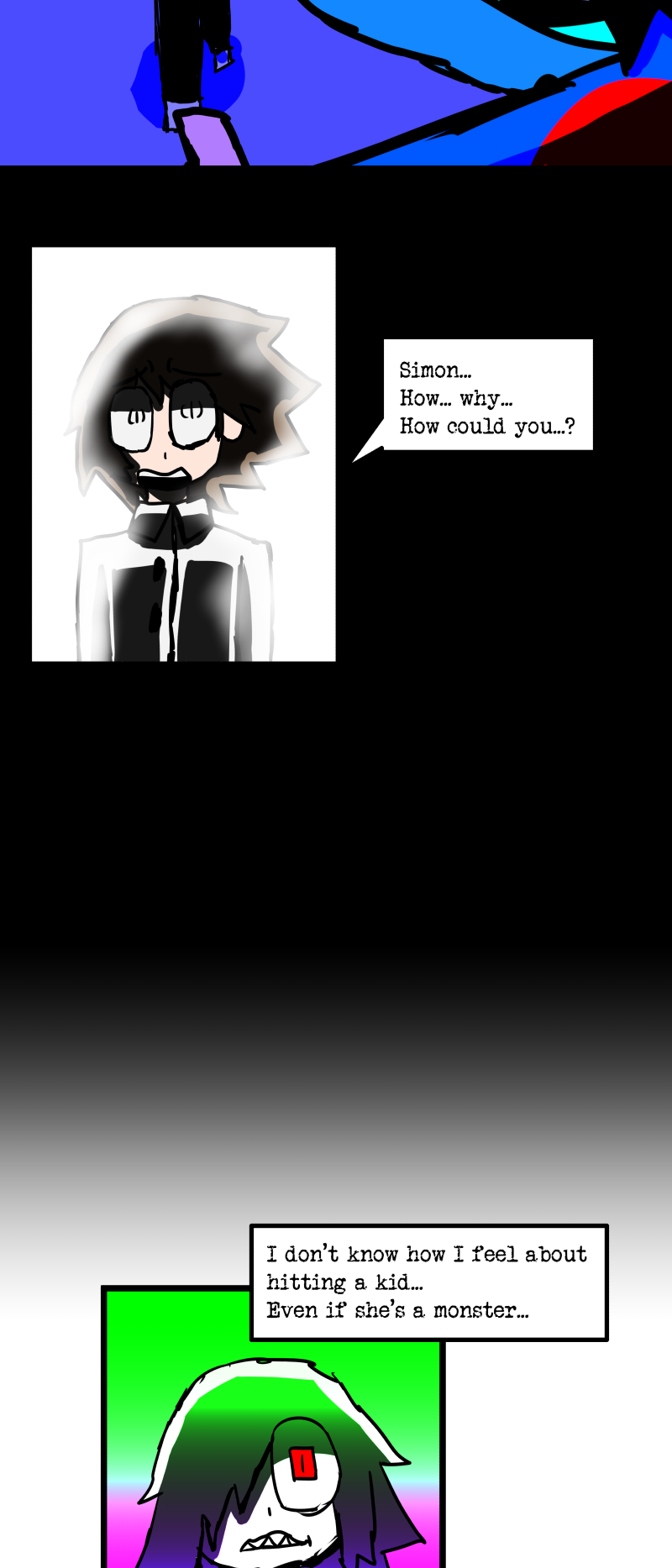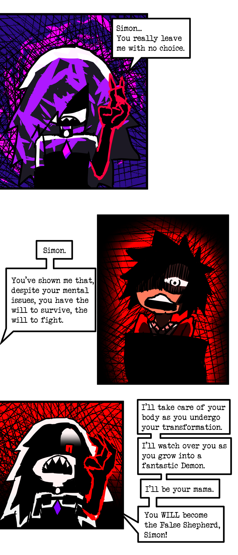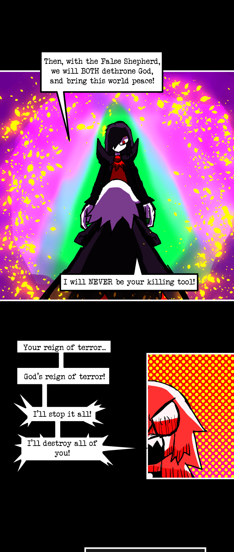 Simon is a 25-year-old, miserable alcoholic who hates himself for his past mistakes. His life takes a drastic turn when he is killed by a mysterious little girl who knocks on his door. He wakes up in a strange world where he must face his demons and is now set with the impossible task of killing God. Will he be able to overcome his guilt and defeat God? Find out in this psychedelic, highly saturated webcomic that explores themes of redemption, faith, and destiny!