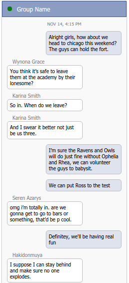 Strongwind Academy is a school and university located an hour south of Chicago in Lake Forest, IL, that caters to the unique needs of supernatural students. While Strongwind Academy is an anthology of stories that follows the students and staff, as well as some others who hold connections to the school, there is also a text portion that we offer for a more authentic touch. This comic will focus on the texts exchanged between characters, though the texts don't make up the whole story.