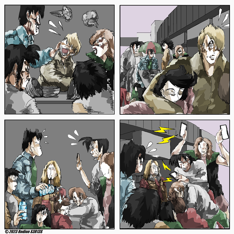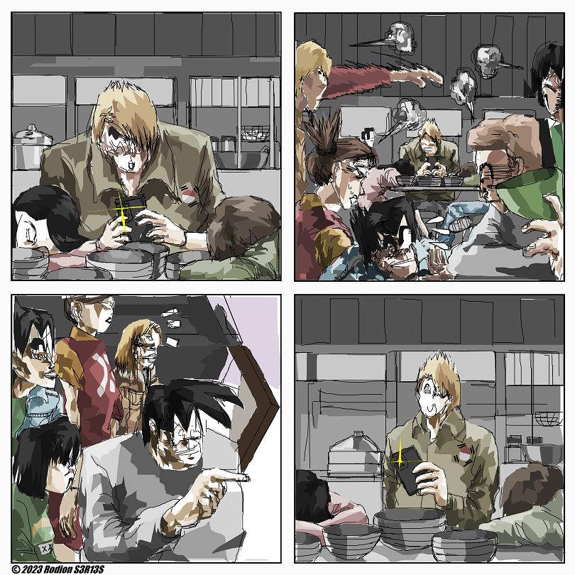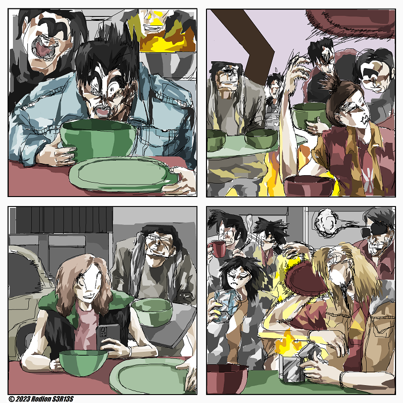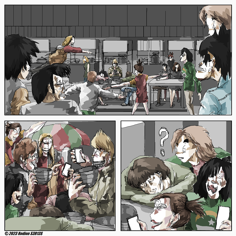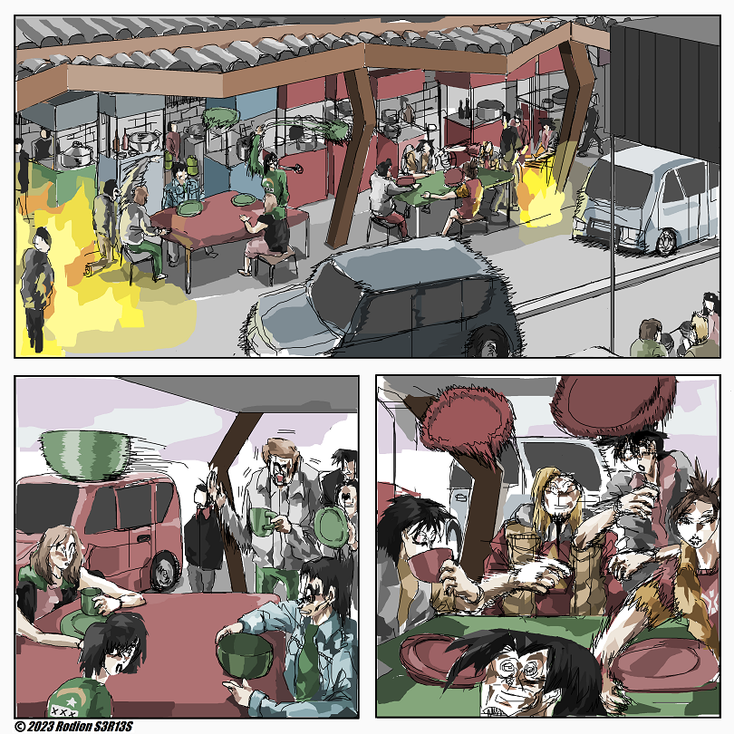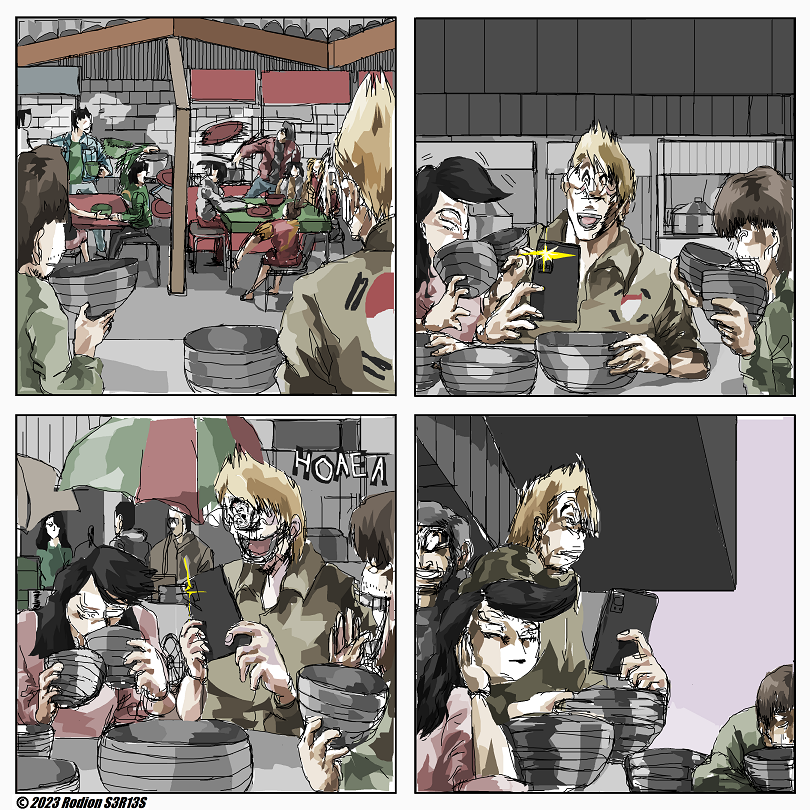 "Ngefotoin Bowl Yes" is Rodion S3R13S silent comic about people battling in street food place