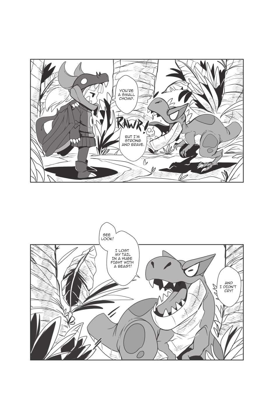Having gained her first Milestone, Ka Bu travels to the Onisaru jungle to get the second Milestone. Ka Bu is suddenly stopped by a young rex named Ebbi.