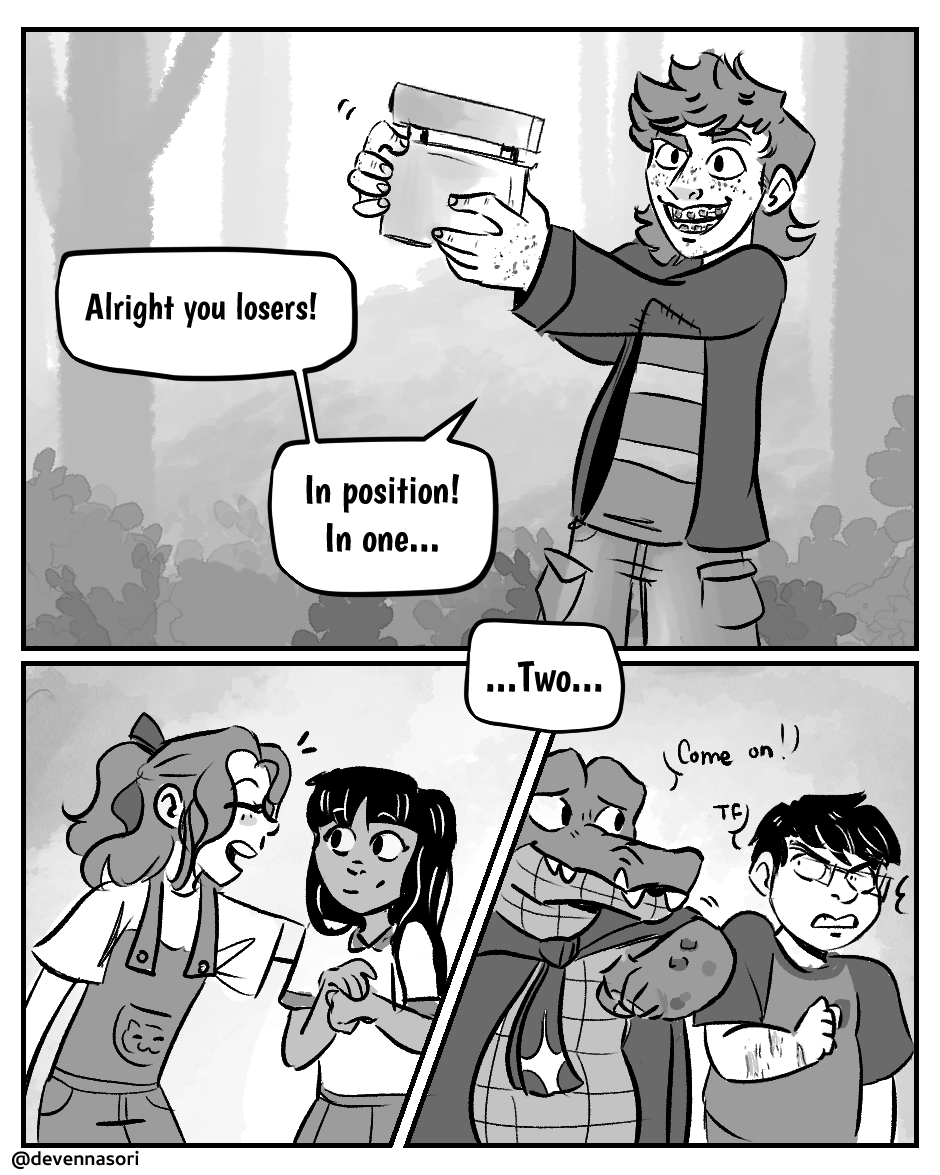 This series contains mock panels from "Yellow Teeth Bay" in order that I could practice drawing and editing various scenes before the official release.