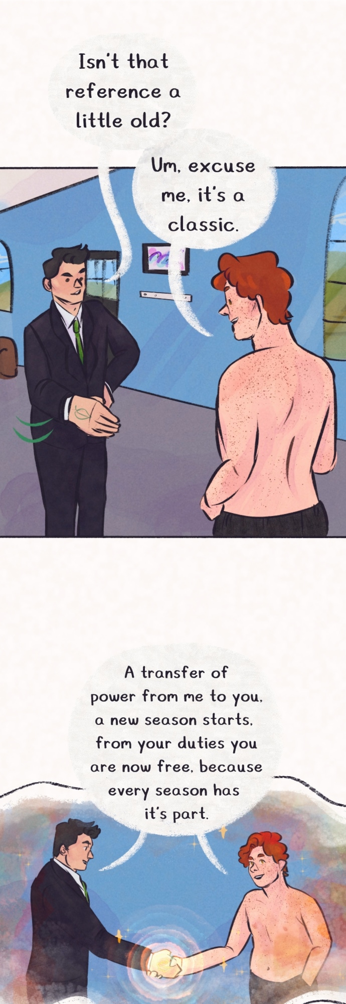 The Seasons are a mess. Kesa (Summer) never takes a break—even when he’s not in charge. Syksy (Autumn) has had feelings for two of his centuries-long roommates. Talvi (Winter) has a quick temper and is typically hiding in her room. Kevat (Spring) is doing her best to keep everyone from strangling each other. How will the others handle themselves when Kevat gets hit with a sleeping curse? What will they do when they find out there are bigger things at play?