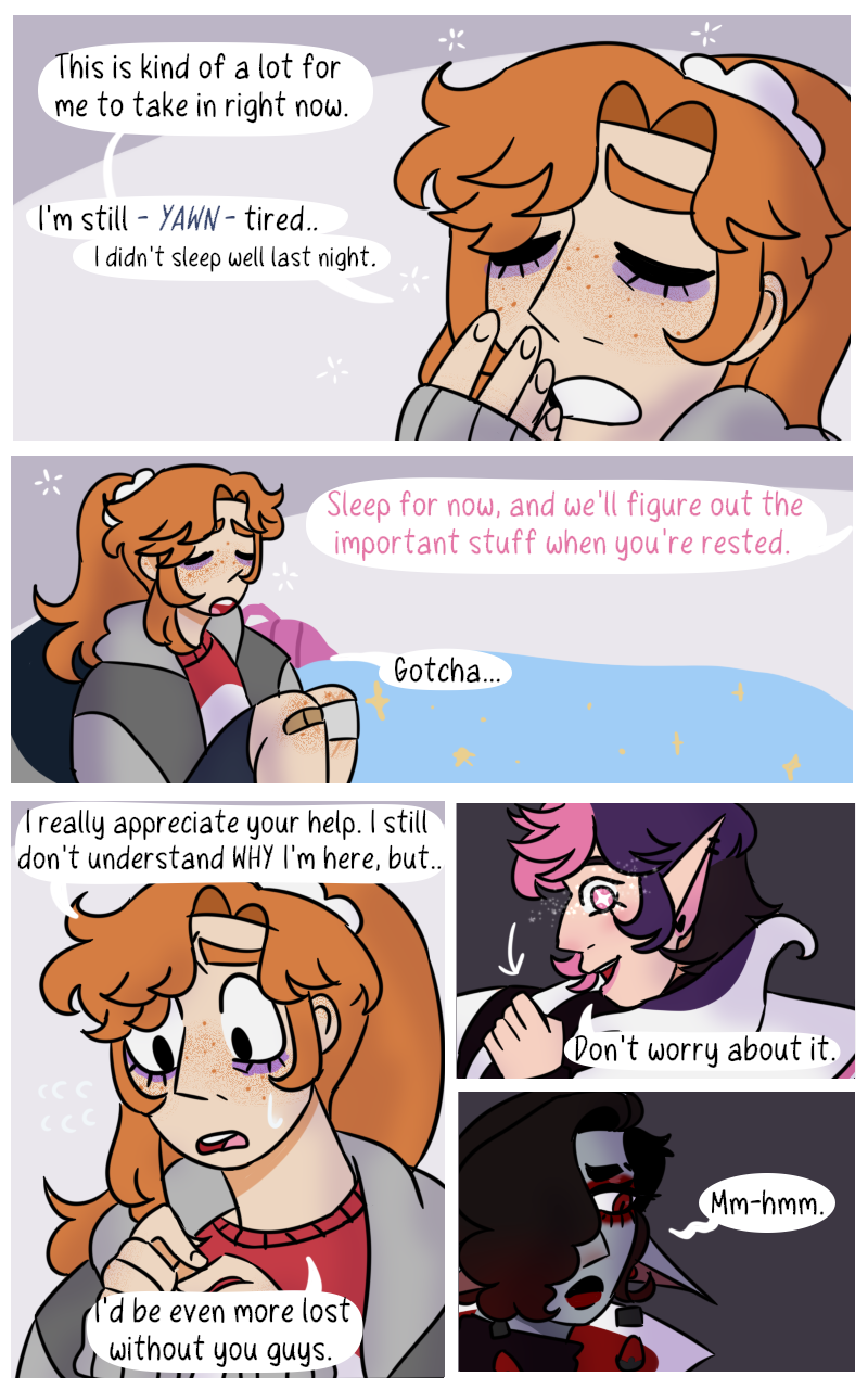 Posted this right before I'm leaving on holiday. Thank you to anyone who has read so far, and look forward to more content soooon! :-) I'll try to have a more consistent upload schedule with the next episode, and I'll do more pages at a time. Happy holidays!