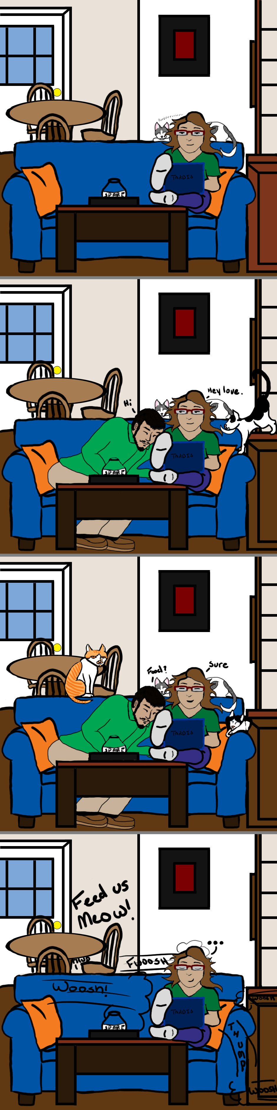 Working my hand at making a digital update. I thought it would add more details to our lives together and how some evenings go when my love gets off work. Maybe I'll do some more digital updates with a bit more background work. I'll still do single panel stuff or exposes to manual.