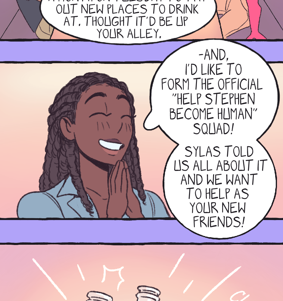Sylas invites Stephen out to introduce him to his friends and partake in their monthly ritual social outing. Stephen makes fast friends, but Sylas' mind drifts elsewhere.
