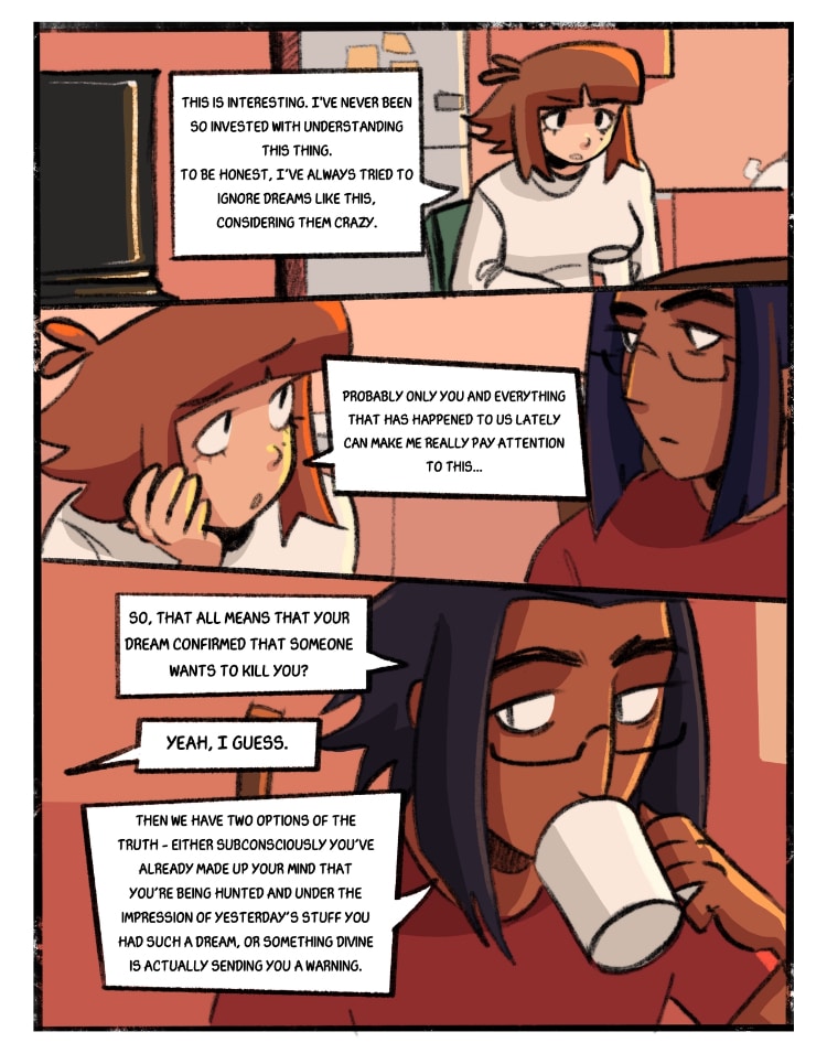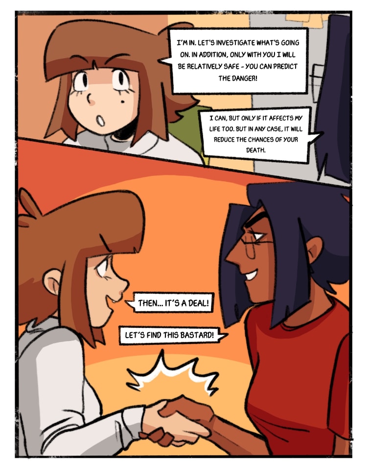In a world where biological technologies are way more advanced than in our realm, Margot tries to just live her boring, normal life, but she doesn't even suspect that she's in a very big danger... Fortunately, she stumbles upon Charlie, her coworker, who has the ability to predict life-threatening situations that are about to happen to her. Will they be safe if they stay together? Or is it not that easy as it seems?