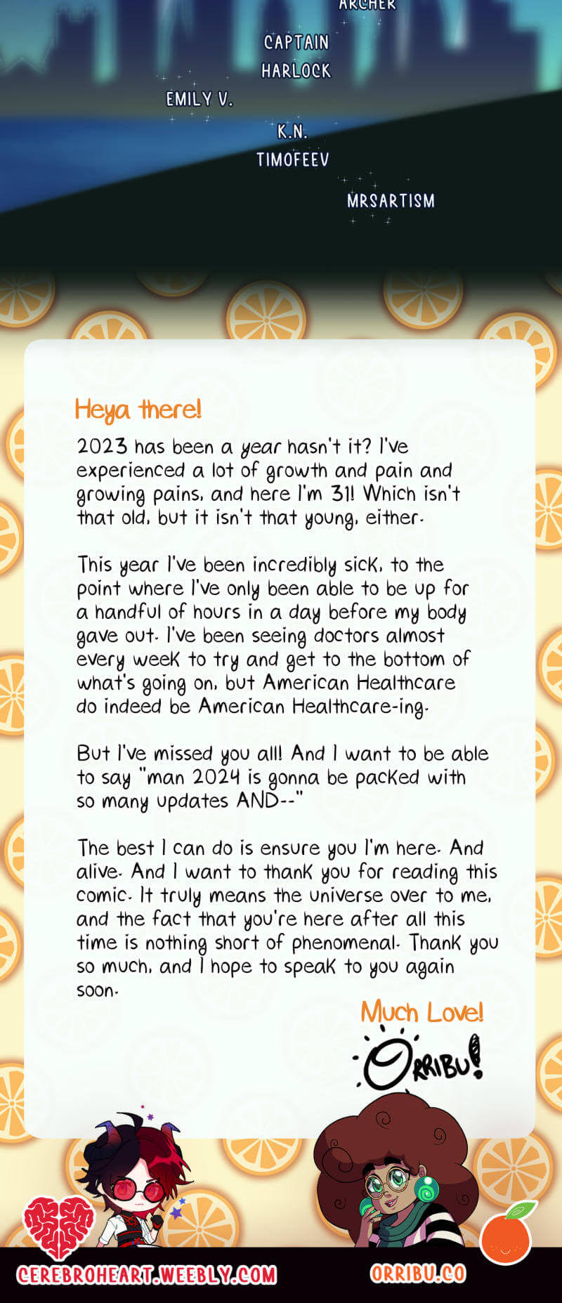 I can't thank you enough for your patience as I got my health in order. I hope you've been doing well!