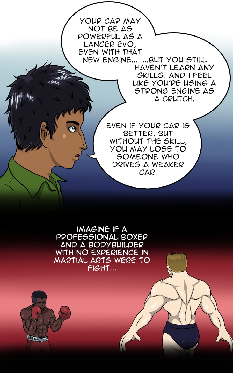 Like any spoiled rich kid, he thinks the car is a piece of junk. As his best friend Pavithran introduces him to a street racer whom becomes Chee Huang's gateway to the world of illegal street racing, he starts to understand that it's not the car that makes the driver, but it's the driver who makes the car.