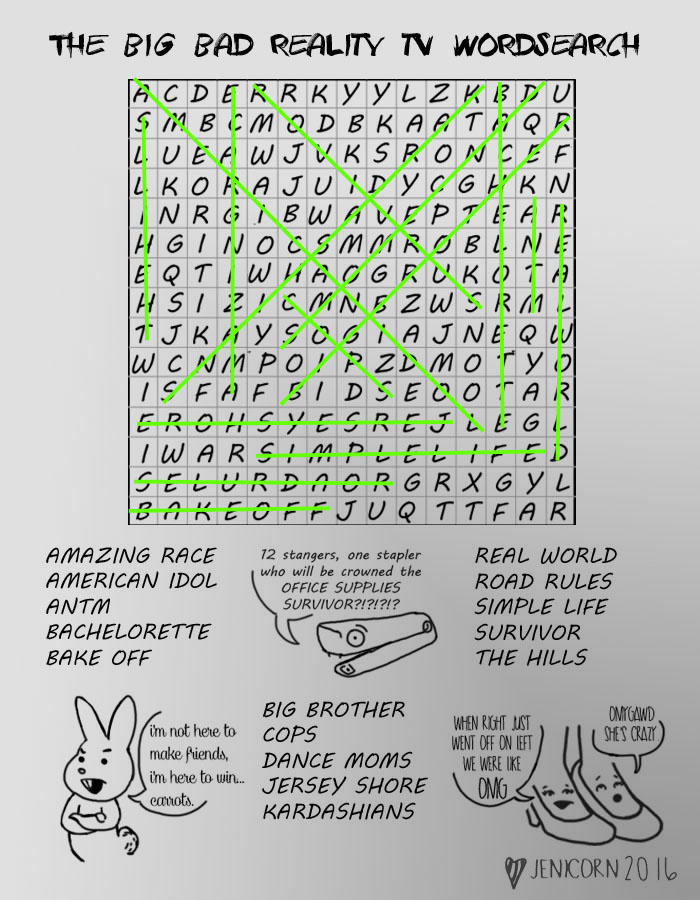 Reality TV Word Search Answers!
